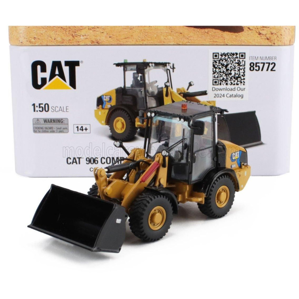 DM MODELLEK CATERPILLAR CAT906 KOMPAKTI ELEKTROMOS RUSPA GOMMATA - KISGÉPES TRAKTOR KEREKES RAKODÓ - SÁRGA FEKETE 1/50