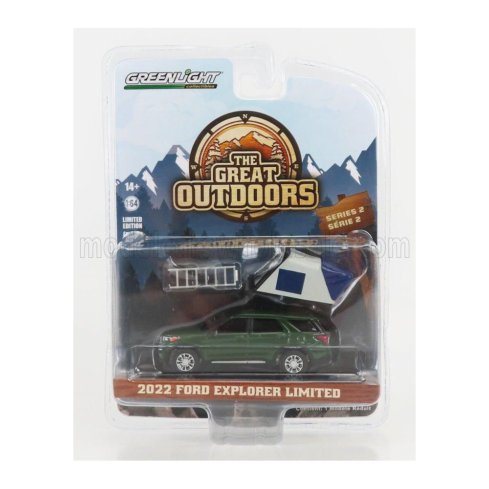 GREENLIGHT FORD USA EXPLORER LIMITED 2022 - THE GREAT OUTDOORS - GREEN 1/64 egy lenyűgöző modellautó a gyűjteményedbe. Ez a vagány kisautó a Ford Explorer 2022-es limitált kiadását örökíti meg egy zöld színű kivitelben.
