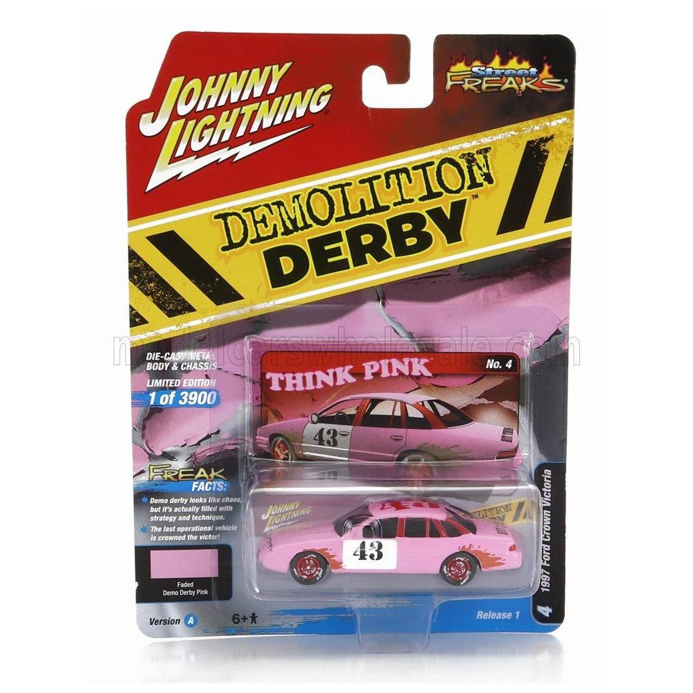 JOHNNY LIGHTNING FORD USA CROWN VICTORIA N 43 DEMILITION DERBY 1997 - PINK WHITE 1/64