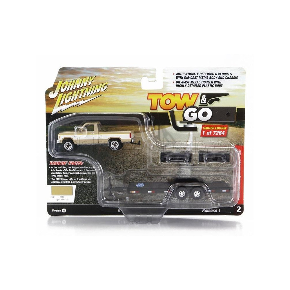 JOHNNY LIGHTNING FORD USA RANGER PICK-UP 1983 PÓTKOCSIVAL AUTÓSZÁLLÍTÓ - BÉZS FEHÉR FEKETE 1/64