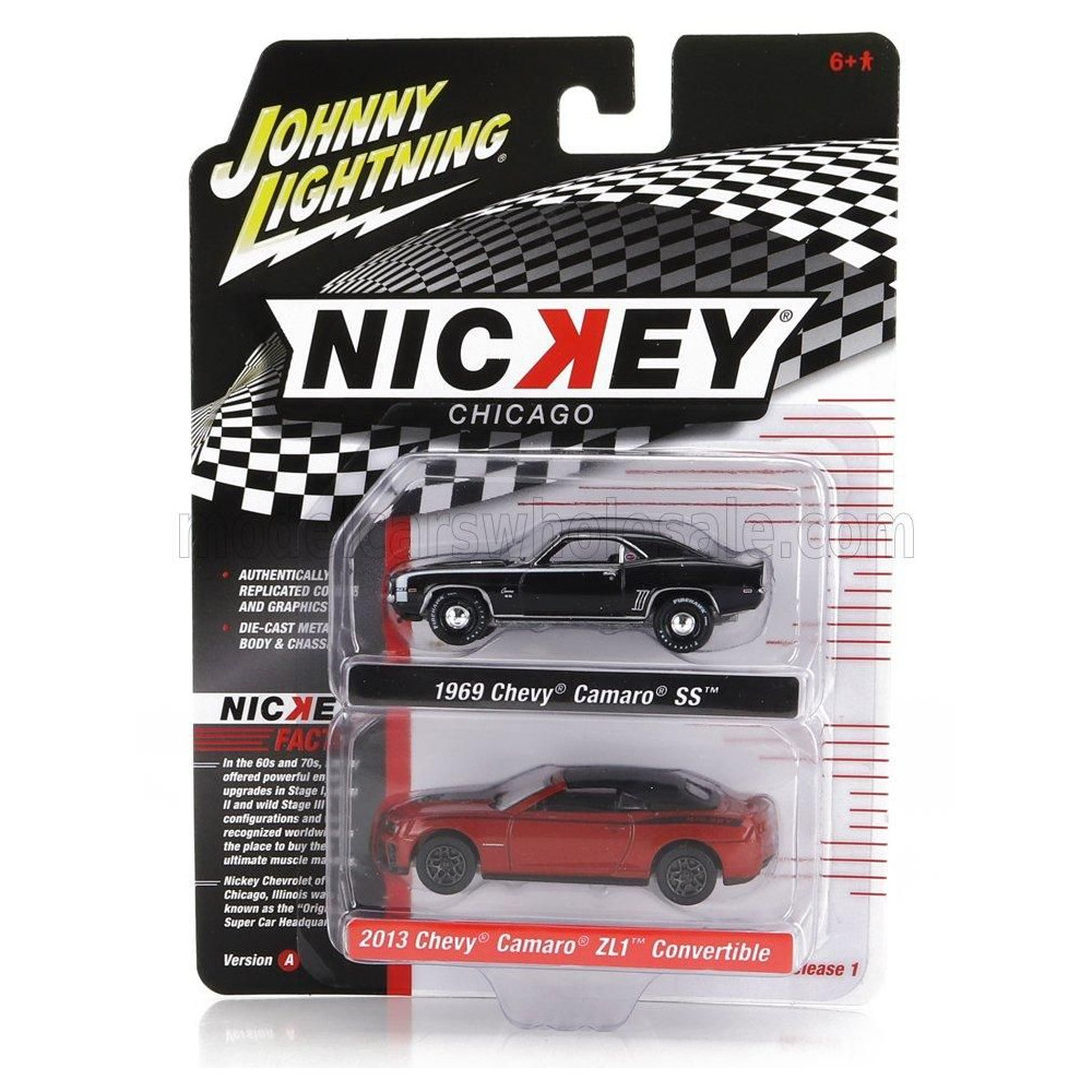 JOHNNY LIGHTNING CHEVROLET SZETT 2X CAMARO SS 1969 + ZL1 CABRIOLET ZÁRT 2013 - FEKETE PIROS 1/64