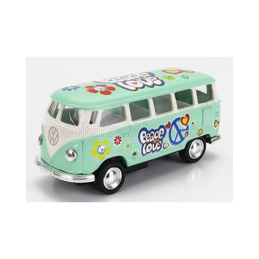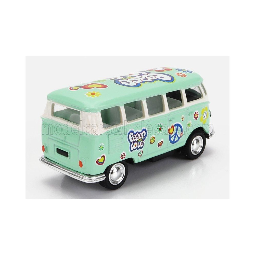KINSMART VOLKSWAGEN T1 SAMBA KISBUSZ VIRÁG 1962 - DOBOZ NÉLKÜL - VILÁGOSZÖLD 1/64