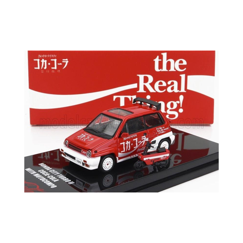 TINY TOYS HONDA CITY TURBO II COCA-COLA THE REAL THING 1981 MOTOCOMPÓVAL - MOTORKERÉKPÁR - PIROS FEHÉR 1/64