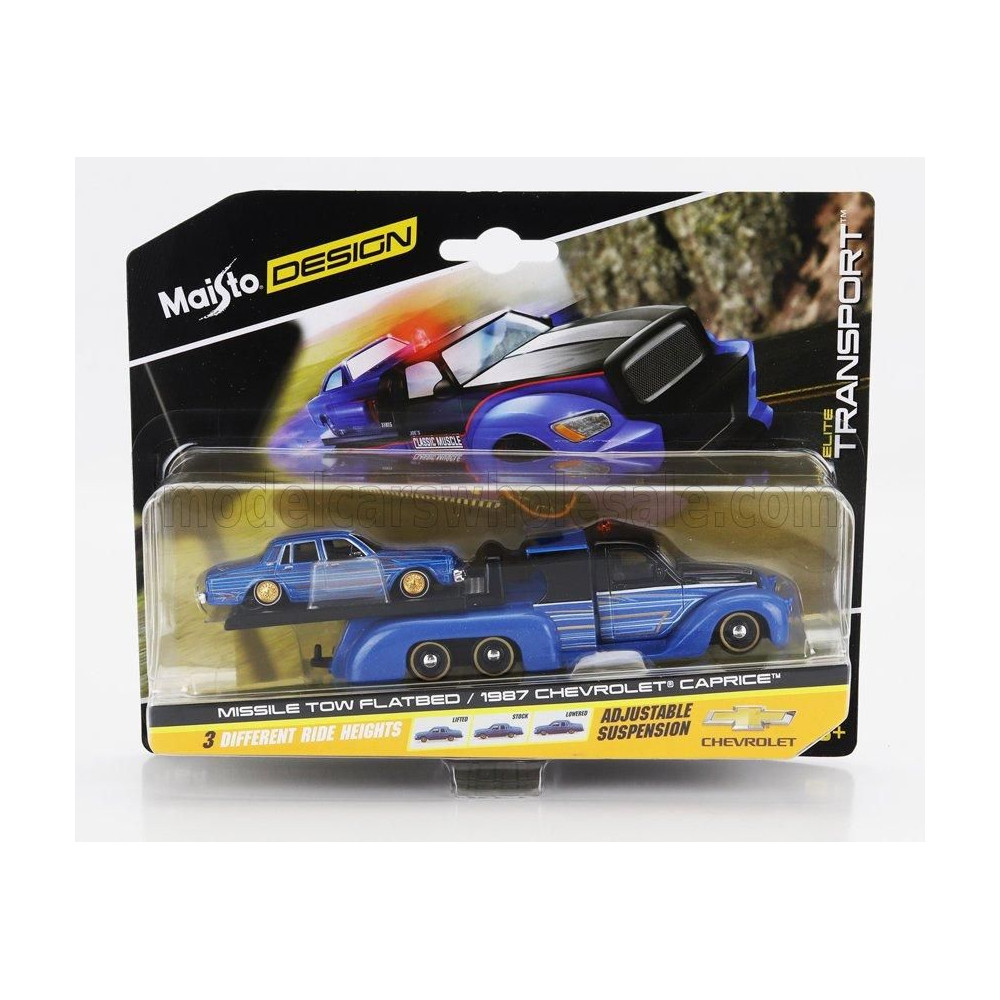 MAISTO TEHERAUTÓ PLATTÁVÚ RÁMPÁS TEHERAUTÓ CHEVROLET CAPRICE-VEL 1987 - KÉK FEKETE 1/64