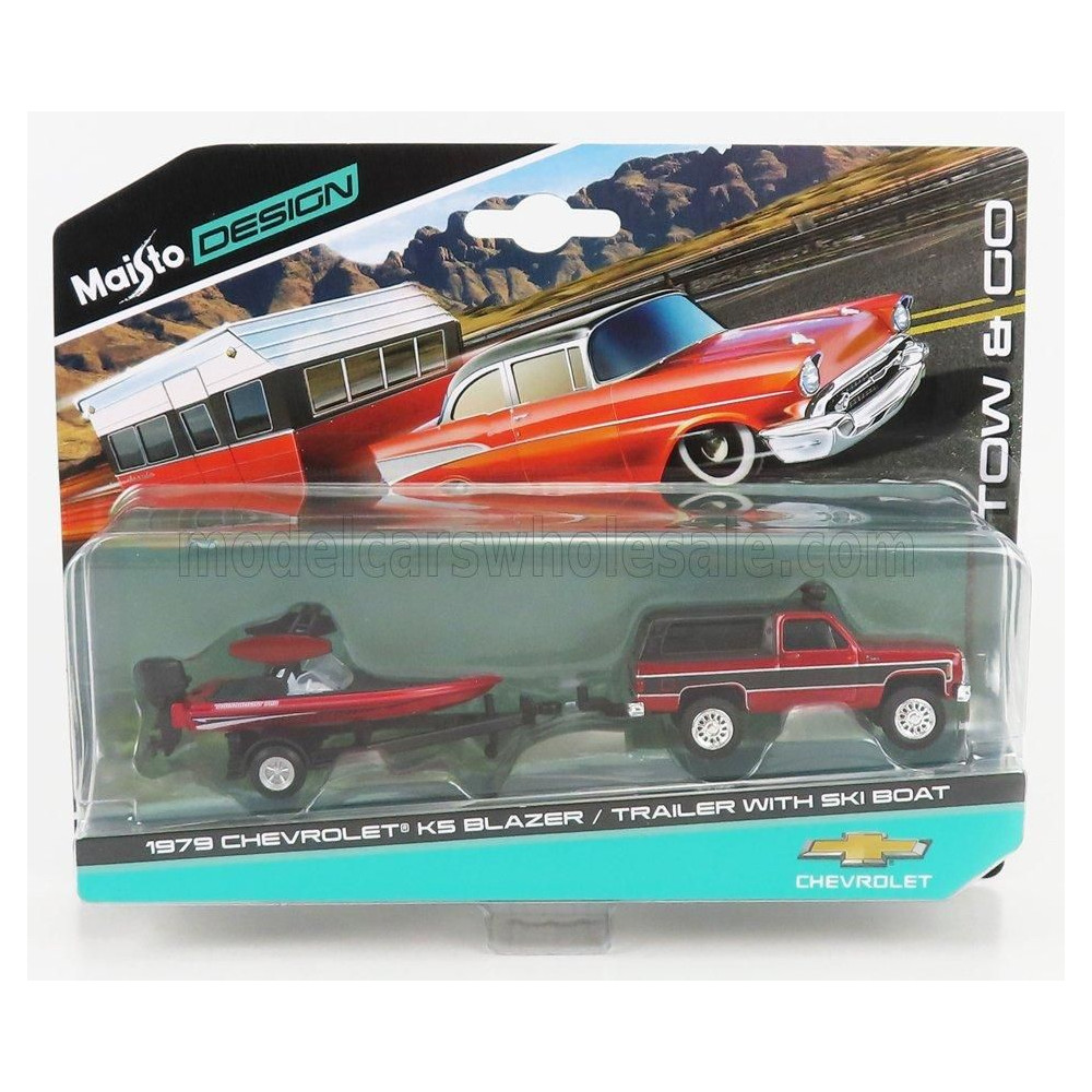 MAISTO CHEVROLET BLAZER K5 1979 SÍHAJÓVAL ÉS UTÁNPOTTÓVAL - PIROS MET 1/64