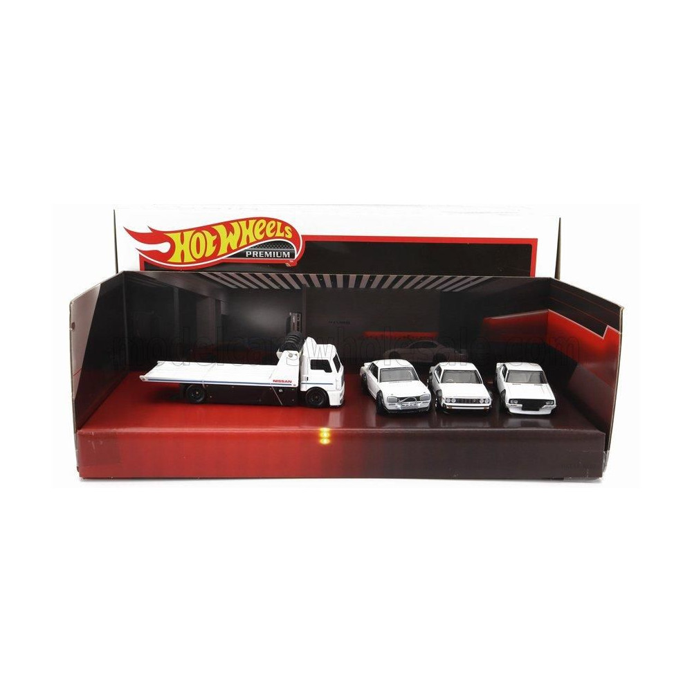 MATTEL HOT WHEELS NISSAN SZETT 4X FLEETSTREET TRUCK AUTÓSZÁLLÍTÓ - SKYLINE 2000GT-R - SKYLINE C210 - SKYLINE HT2000 GT-X - FEHÉR