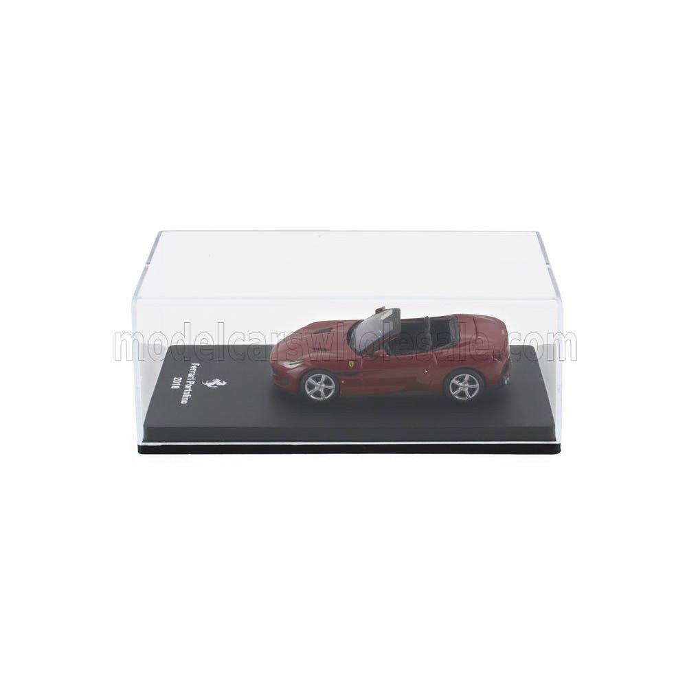 EDICOLA FERRARI PORTOFINO KABRIÓLET NYITVA 2018 - CON VETRINA - VITRINEL - ROSSO MUGELLO - SÖTÉT PIROS 1/64
