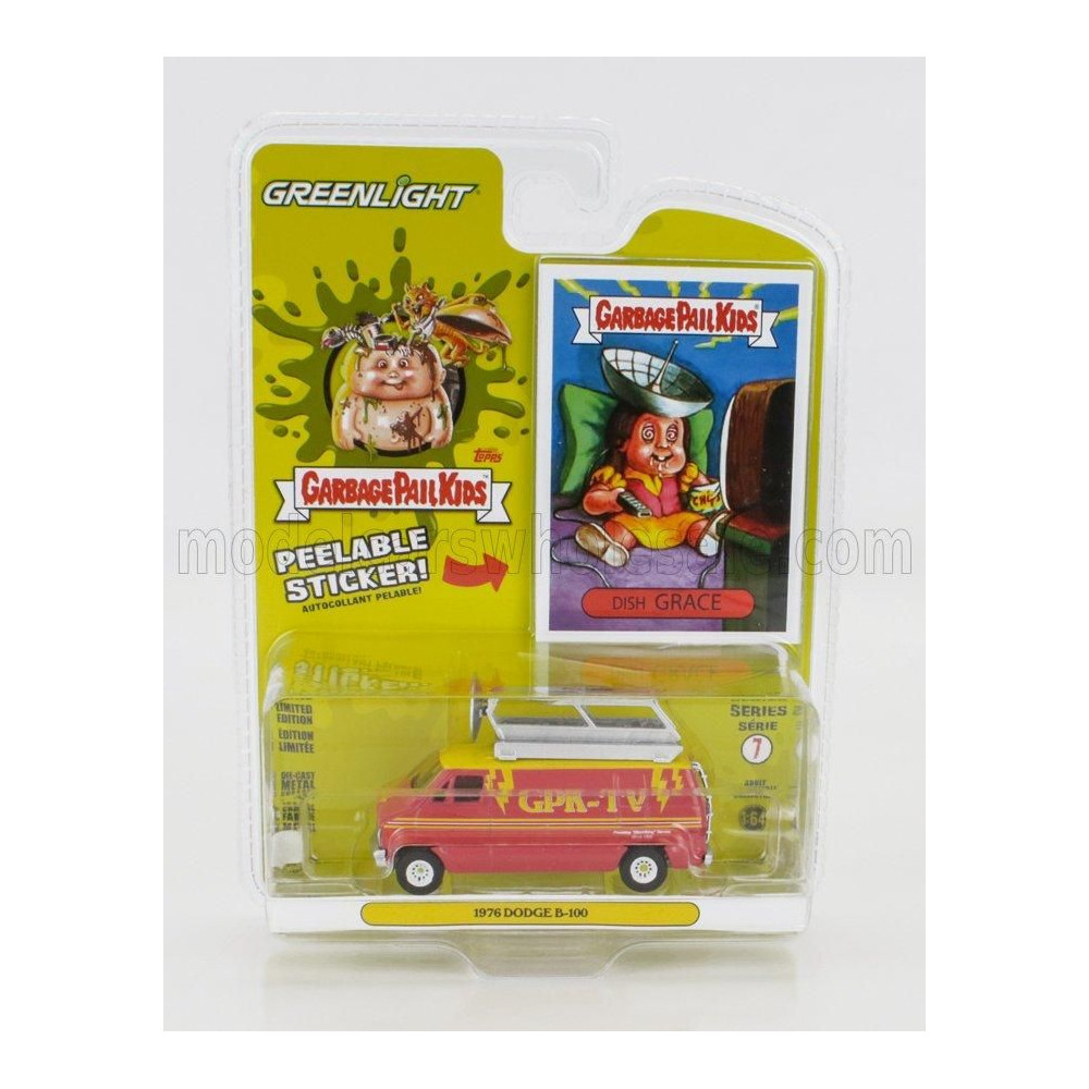 GREENLIGHT DODGE B-100 VAN GPK-TV 1976 - SZEMÉTVÖDÖR GYEREKEKNEK - RÓZSASZÍN-SÁRGA 1/64