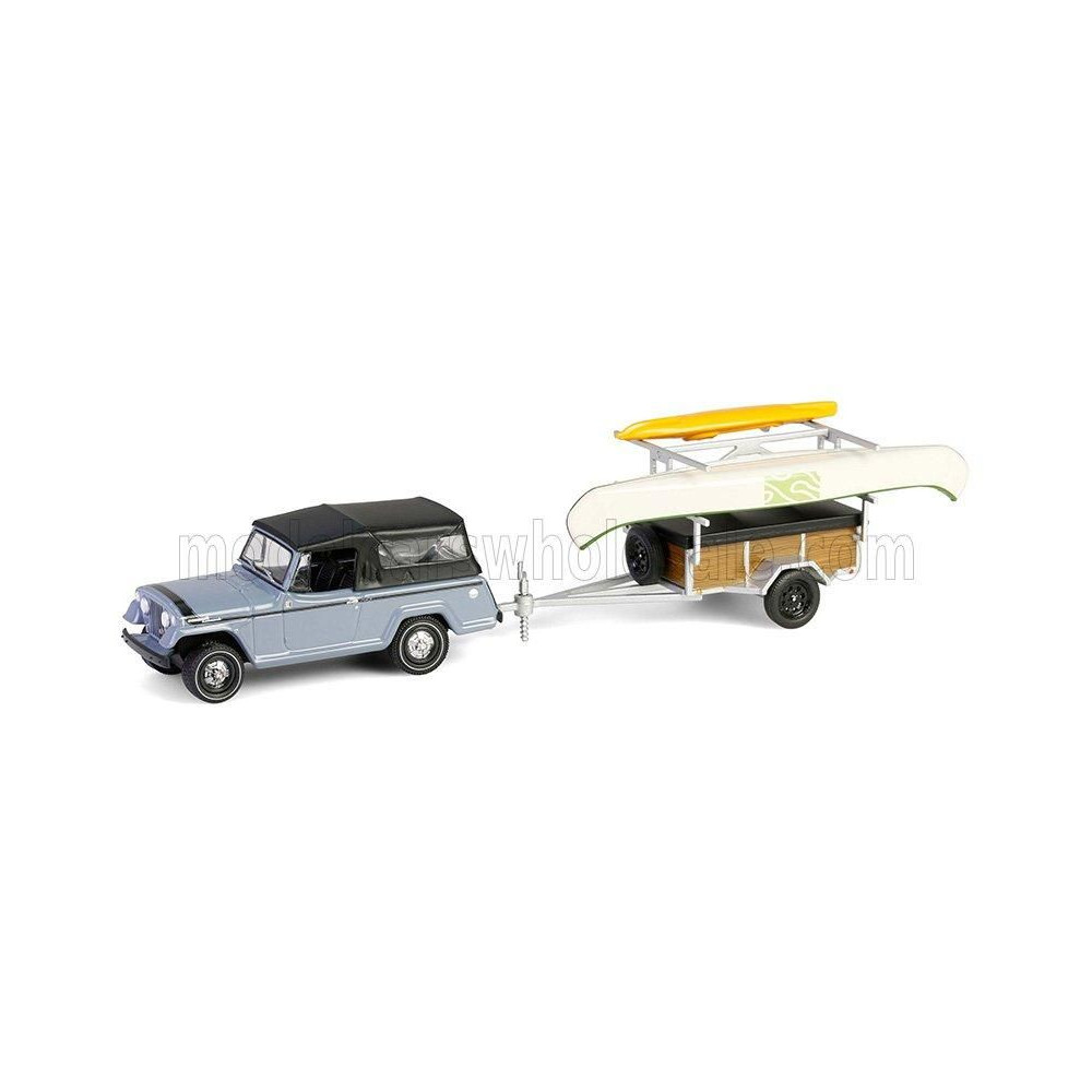 GREENLIGHT JEEP JEEPSTER COMMANDO SC-1 KENUVAL + KAJAK PÓTKOCSIPÓVAL 1968 - SZÜRKE 1/64