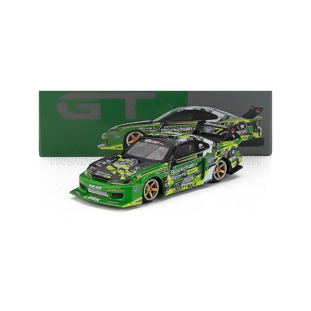 MINI GT NISSAN SILVIA (S15) LB SUPER SILHOUETTE N 555 V2 FORMULA DRIFT JAPAN RHD 2024 - ZÖLD FEKETE 1/64