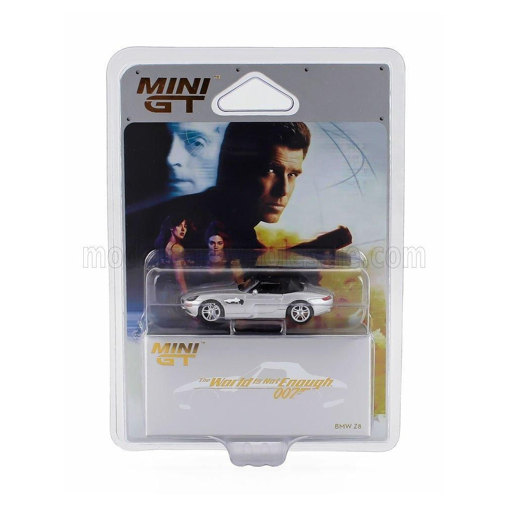 MINI GT BMW Z8 SPIDER 1999 - 007 JAMES BOND - A VILÁG NEM ELÉG - A NEM BASTA VILÁG - ANGOL BLISZTERES CSOMAGOLÁS - EZÜST