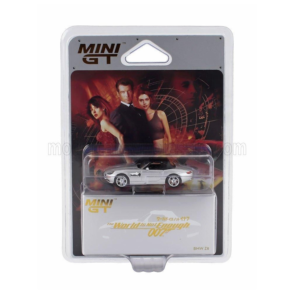 MINI GT BMW Z8 SPIDER 1999 - 007 JAMES BOND - A VILÁG NEM ELÉG - IL MONDO NON BASTA - JAPÁN BLISZTERES CSOMAGOLÁS - EZÜST