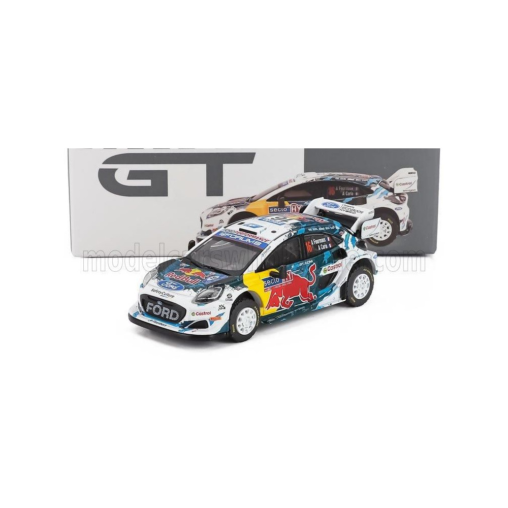 MINI GT FORD ANGLIA PUMA RALLY1 N 16 TEAM MSPORT 3. WRT FINNORSZÁG RALLY 2024 ADRIEN FOURMAUX - ALEXANDRE CORIA - KÉK PIROS FEHÉ