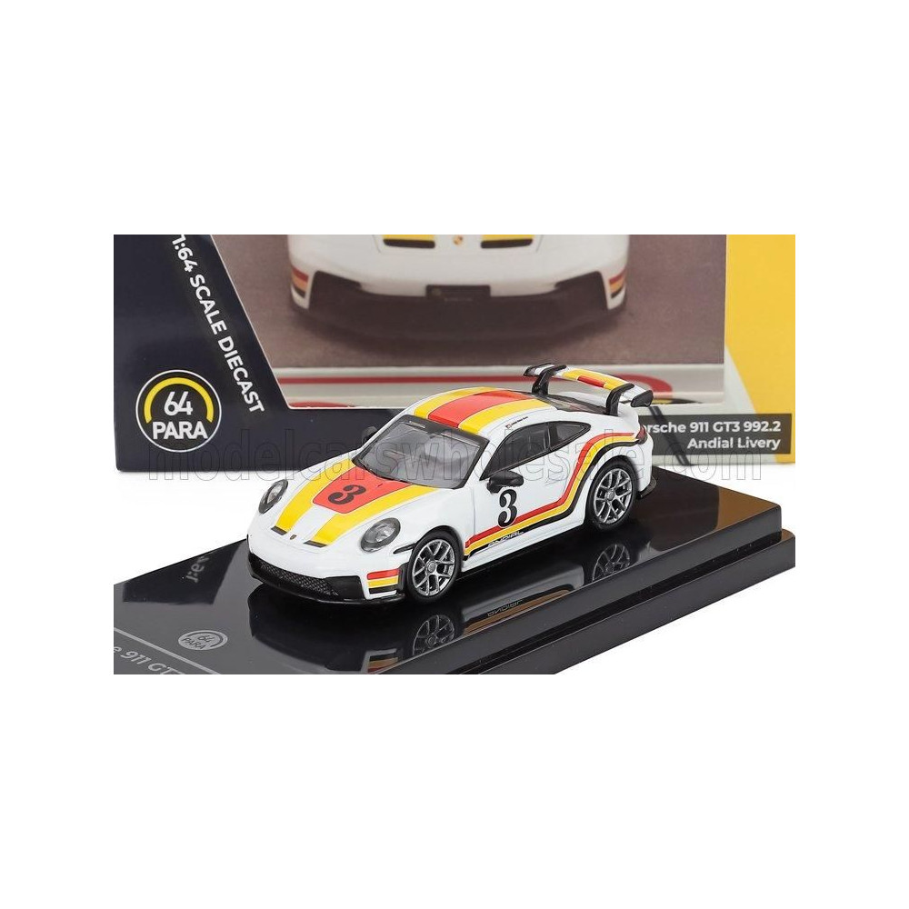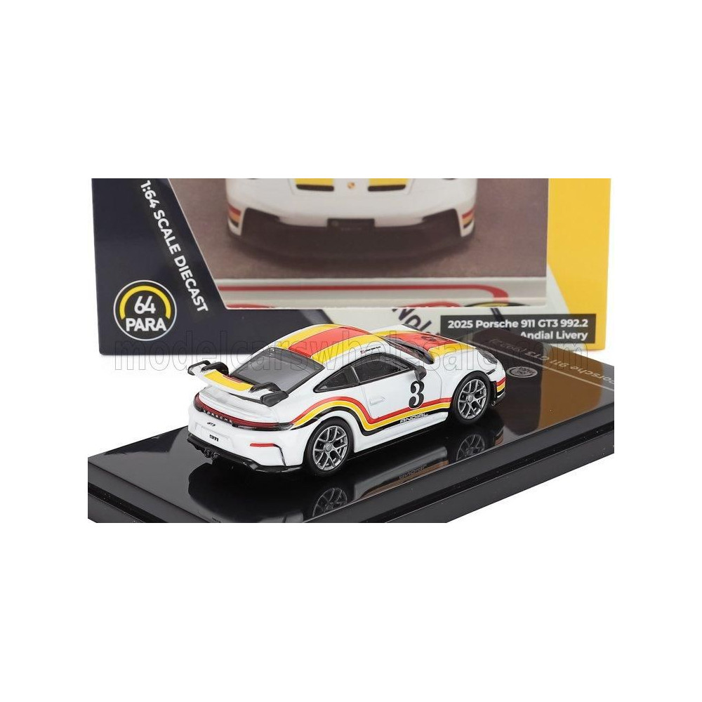 PARAGON MODELS PORSCHE 911 992-2 GT3 ANDIAL FÉNYEZÉS N 3 COUPE 2025 - FEHÉR NARANCS PIROS 1/64