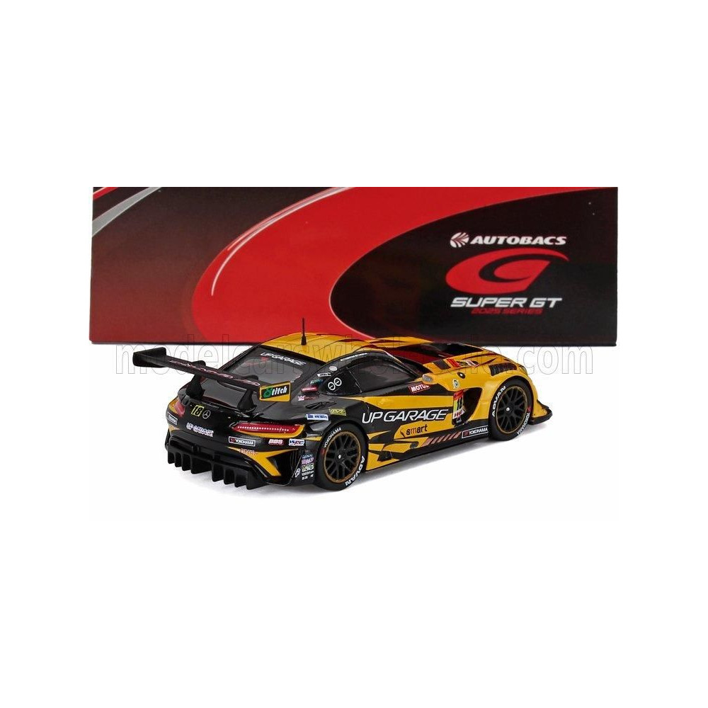 SPARK MODELL MERCEDES BENZ AMG GT3 EVO CSAPATFRISSÍTŐ N 18 GT300 OSZTÁLY SUPER GT 2025 TAKASHI KOBAYASHI - YUTO NOMURA - SÁRGA F