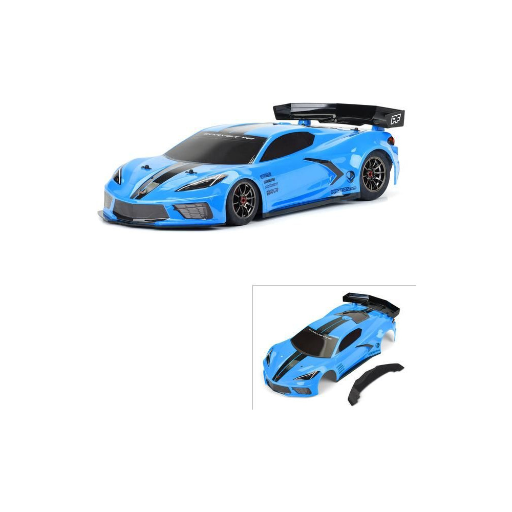 PROTOform karosszéria 1:7 méretarányban, Chevrolet Corvette C8 Rapid Blue színben: Arrma Felony vagy ARRMA® Infraction. A General Motors által hivatalosan engedélyezett, mock-up részletekkel, fekete versenycsíkokkal, első osztószárnnyal és hátsó szárnnyal, hogy teljes legyen a szuper méretarányos megjelenés. 1,5 mm-es polikarbonátból készült, előre kifúrt lyukakkal.
