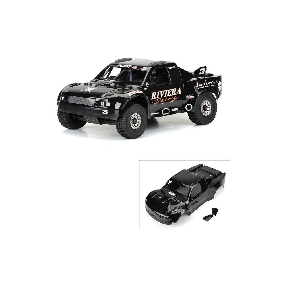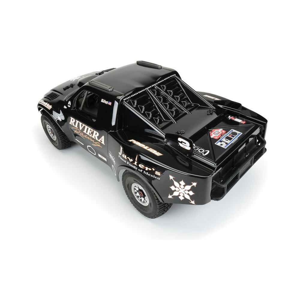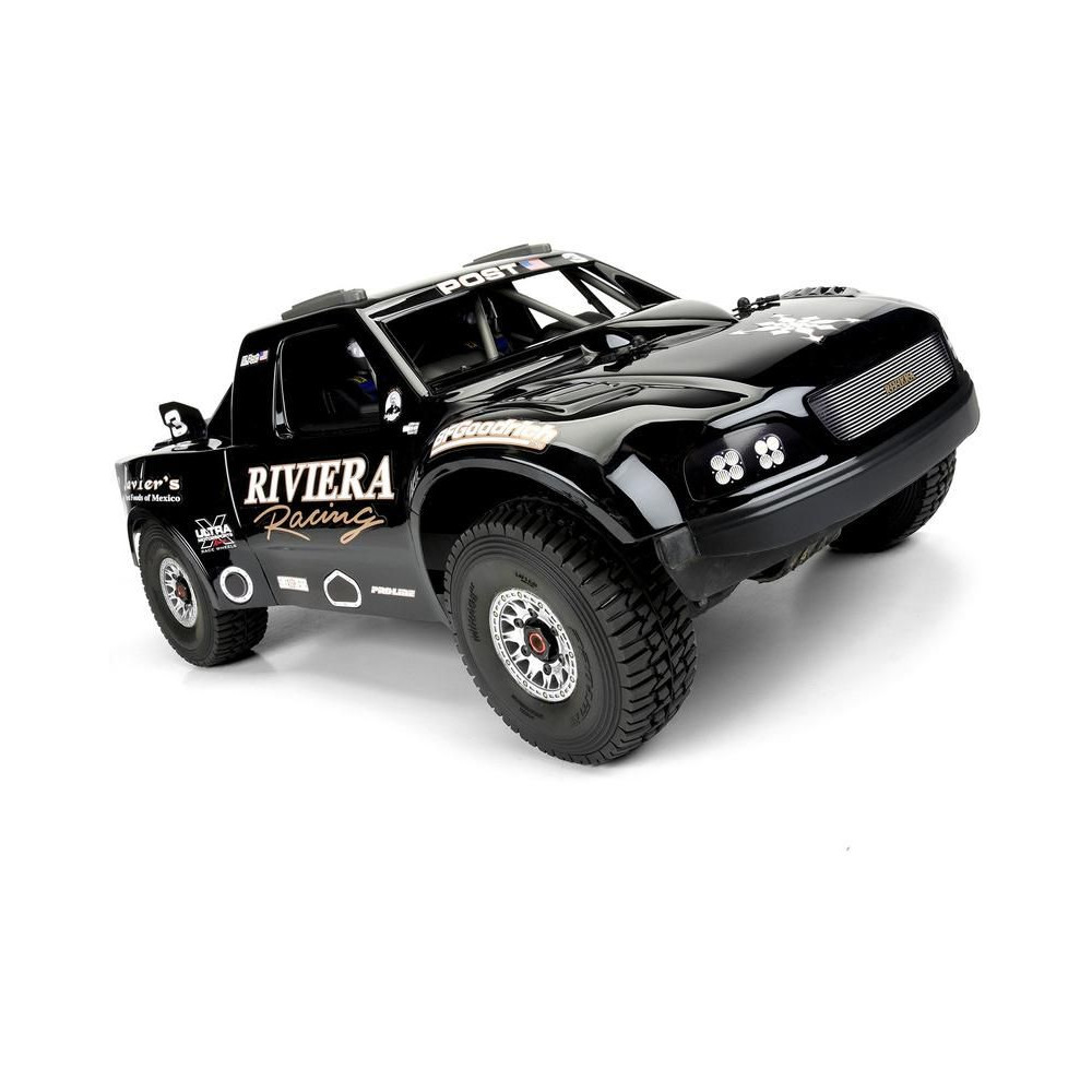 Az 1997-es Ford® F-150 "Riviera Edition" Tough Color Trophy Truck karosszériája az egyik leghíresebb Baja 1000 trófeakocsi, az 1997-es Ford® F-150 Riviera Racing "Black Diamond". Mostantól elérhető az 1:7 ARRMA® MOJAVE™ 6S RC modellhez! Az 1997-es Ford® F-150 egy legendás platform az Off-Road Trophy Truckok világában. A gyártó Pro-Line a lehető legnagyobb realizmussal örökítette meg Mark Post Riviera Racing teherautójának nosztalgikus és fenséges vonalvezetését. Az ikonikus Riviera Racing fekete színezését szponzori matricák, makett részletek és rendszámtáblák emelik ki. A karosszéria fekete polikarbonátból készült, festés nem szükséges. Egyszerűen használd az előre kivágott Riviera Racing matricákat, és helyezd fel őket a karosszériára. Használd a Mirage TT gumiabroncsokat (PRO1022410), hogy tökéletes legyen a stílus és a teljesítmény a továbbfejlesztett Mojave™ 6S teherautódon!