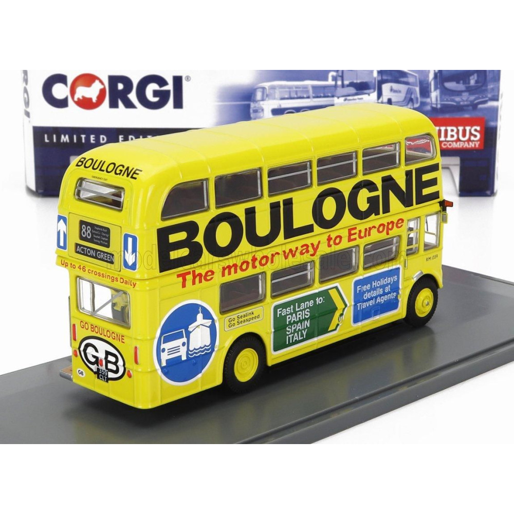 CORGI AEC TÍPUS RM BUSZ LONDON TRANSPORT BOULOGNE ROUTE 88 AKCIÓ ZÖLD 1949 - SÁRGA 1/76