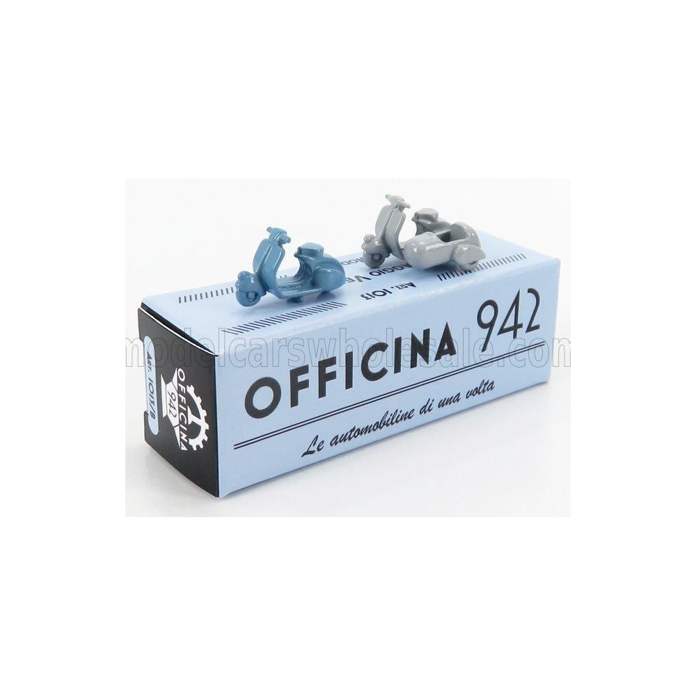 OFFICINA 942 PIAGGIO KÉSZLET 2X VESPA 98 + VESPA 98 OLDALKOCSI 1946 - VILÁGOSKÉK VILÁGOSSZÜRKE 1/76