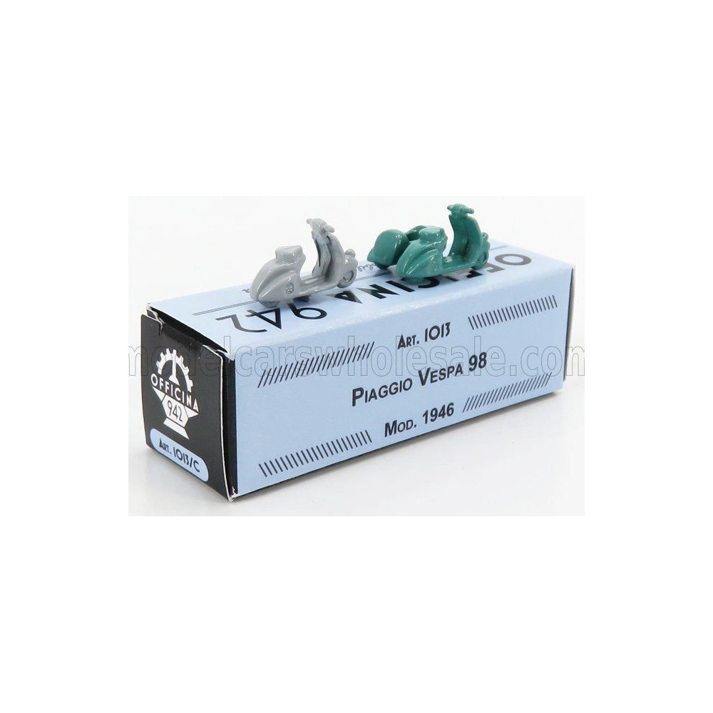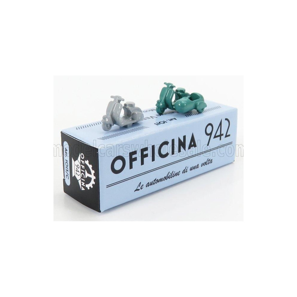 OFFICINA 942 PIAGGIO KÉSZLET 2X VESPA 98 + VESPA 98 OLDALKOCSI 1946 - VILÁGOSSZÜRKE ZÖLD 1/76