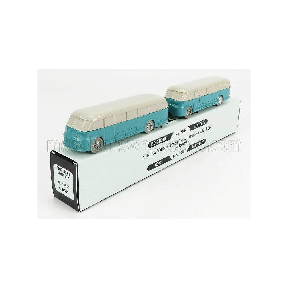 OFFICINA 942 FIAT 666RN BUSZ CON RIMORCHIO VIBERTI PARIGI 1946 - VILÁGOSKÉK SZÜRKE 1/76