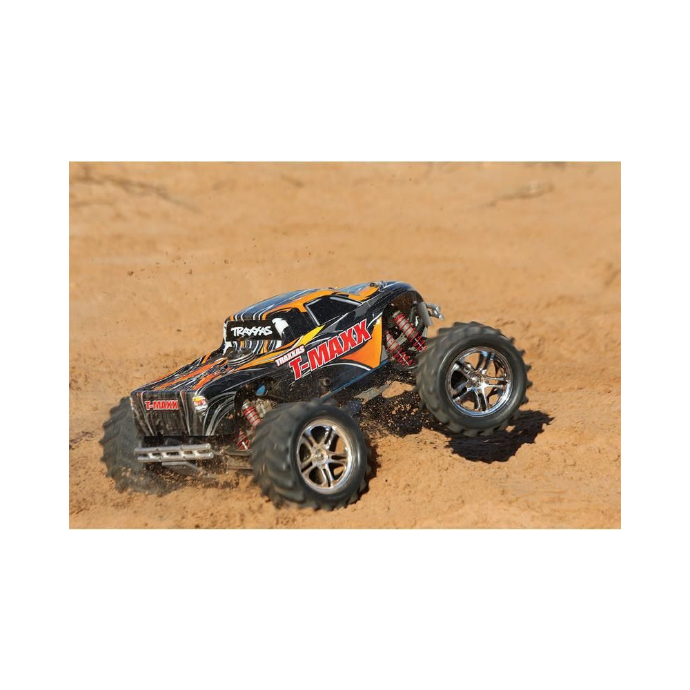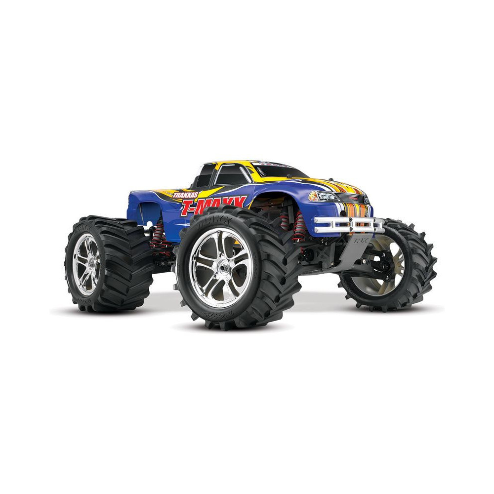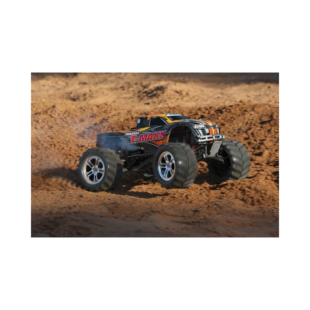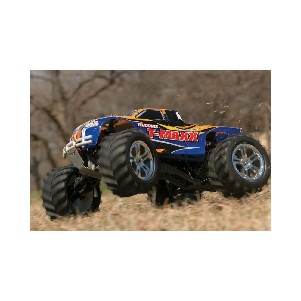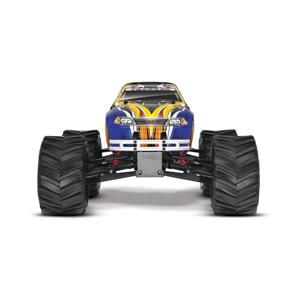 A Traxxas T-Maxx 2.5 Nitro 4WD Monster Truck a végső eszköz a győzelemhez. Erős TRX 2.5 versenymotorral rendelkezik, tuningolt kipufogóval, és 3,2 mm vastag 6061-T6-os kék eloxált alumíniumból készült merev alvázzal. Az óriási, 160 mm átmérőjű gumiabroncsok maximális tapadást biztosítanak terepen, az autó nagy hasmagassággal rendelkezik, ami nem akadályozza meg abban, hogy a legnagyobb bukkanókon is áthaladjon. Az új T-Maxx emellett hihetetlenül gyorsul és remekül kezelhető a pályán, köszönhetően az összkerékhajtásnak és a nagy tengelytávnak. A modell akár 64 km/h sebességet is elérhet!