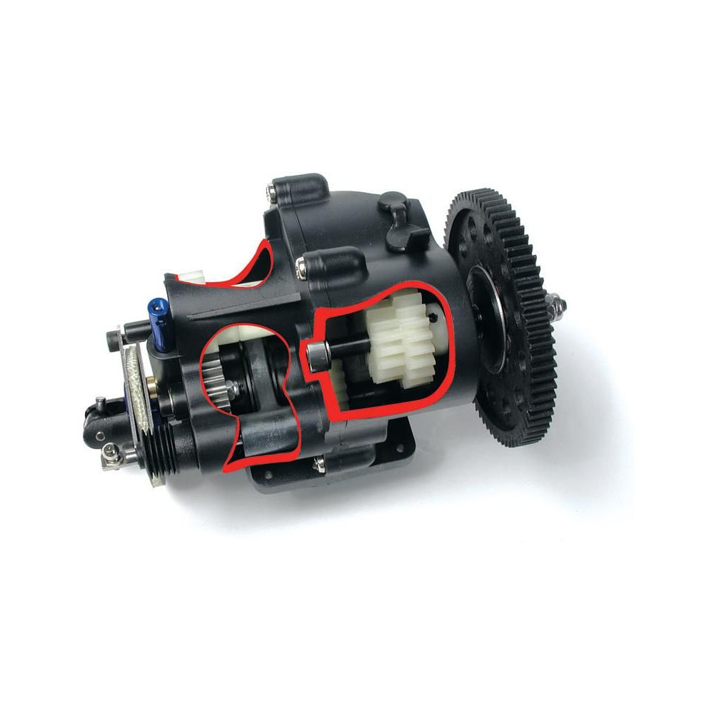 A T-Maxx 2.5 Nitro kétfokozatú automata sebességváltóval rendelkezik hátramenettel, amelyet külön szervó vezérel. A sebességváltó a kimeneti tengely meghajtó lánckerekére szerelt centrifugakuplunggal rendelkezik, amely csak nagyobb sebességnél kapcsol be.alacsonyabb motorfordulatszám, így a modell nem megy előre üresjáratban.