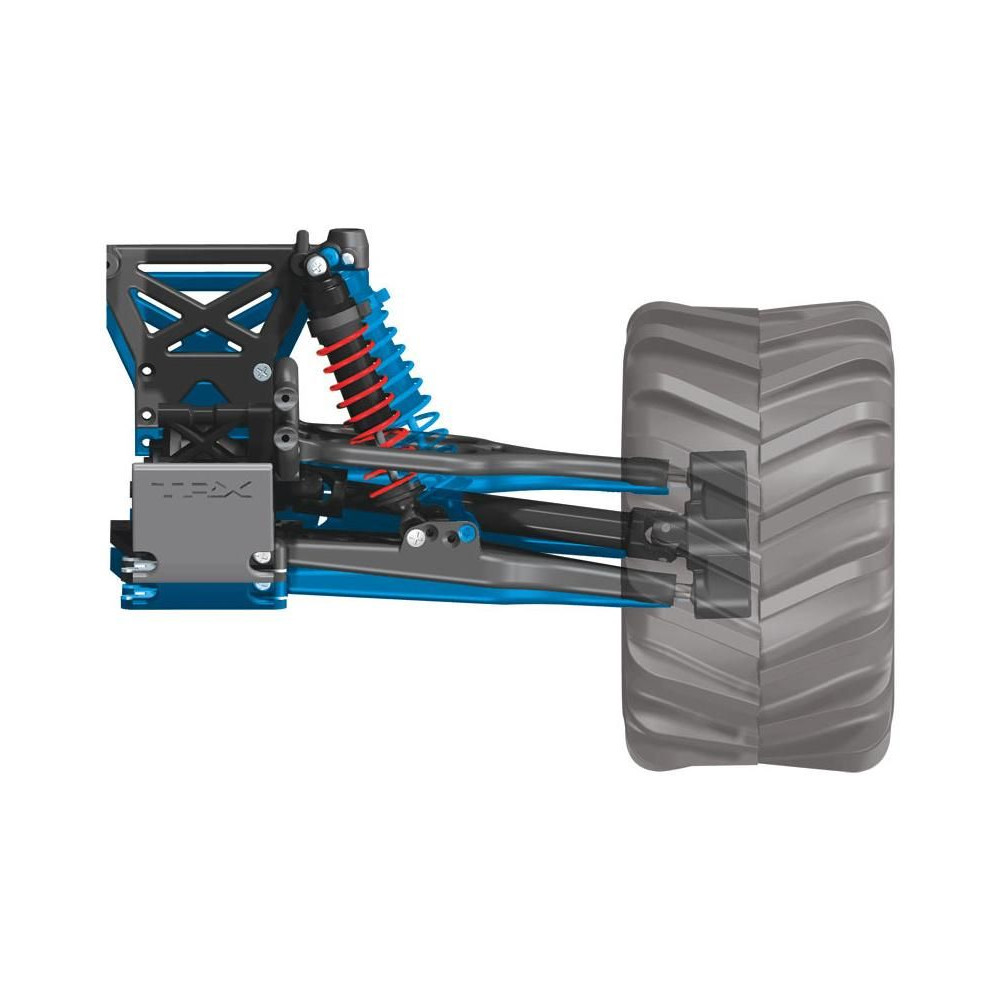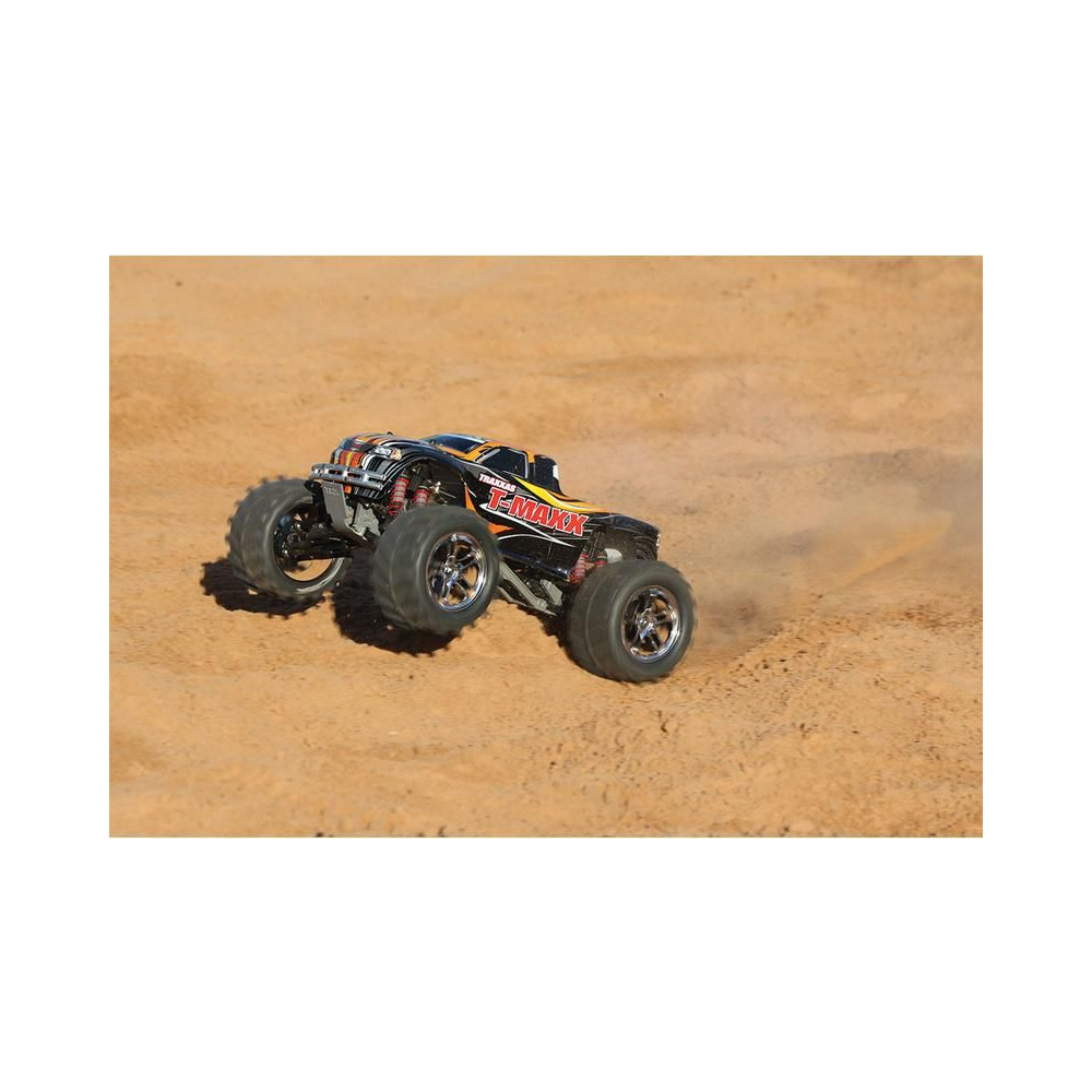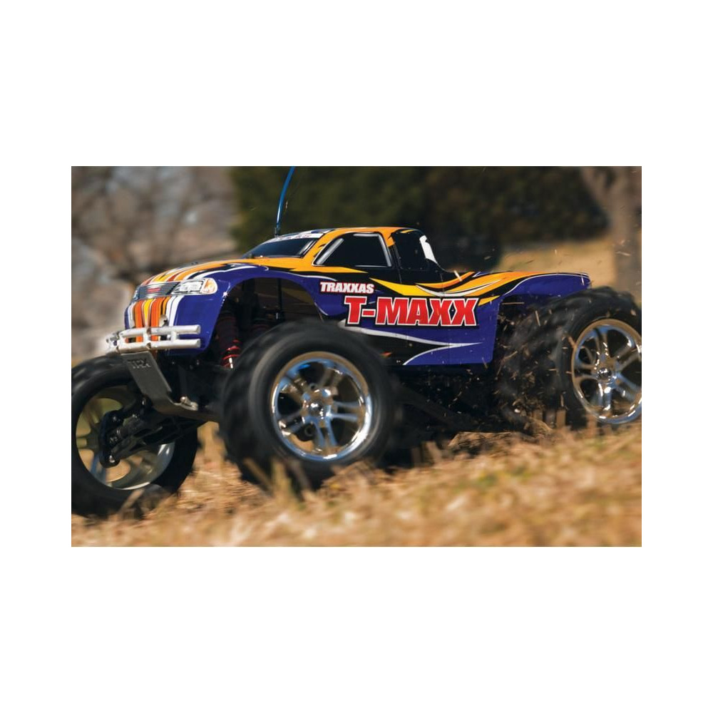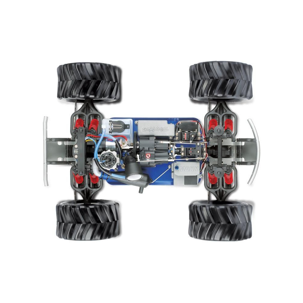 A Traxxas T-Maxx 2.5 Nitro 4WD Monster Truck a végső eszköz a győzelemhez. Erős TRX 2.5 versenymotorral rendelkezik, tuningolt kipufogóval, és 3,2 mm vastag 6061-T6-os kék eloxált alumíniumból készült merev alvázzal. Az óriási, 160 mm átmérőjű gumiabroncsok maximális tapadást biztosítanak terepen, az autó nagy hasmagassággal rendelkezik, ami nem akadályozza meg abban, hogy a legnagyobb bukkanókon is áthaladjon. Az új T-Maxx emellett hihetetlenül gyorsul és remekül kezelhető a pályán, köszönhetően az összkerékhajtásnak és a nagy tengelytávnak. A modell akár 64 km/h sebességet is elérhet!