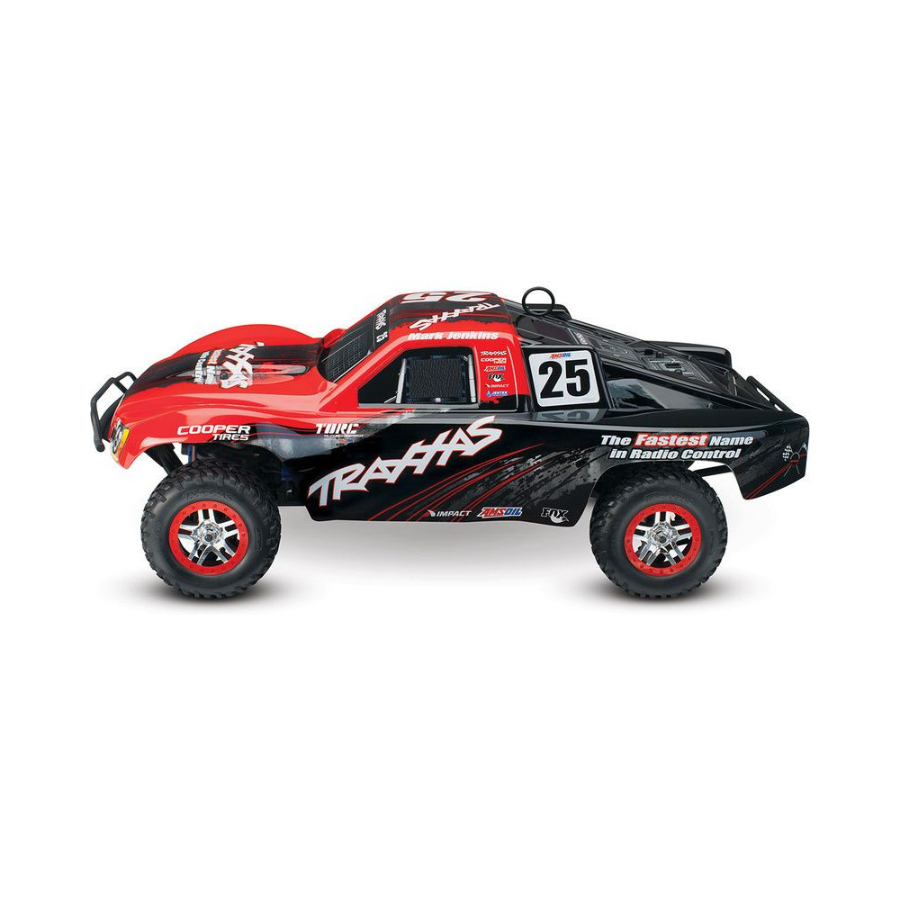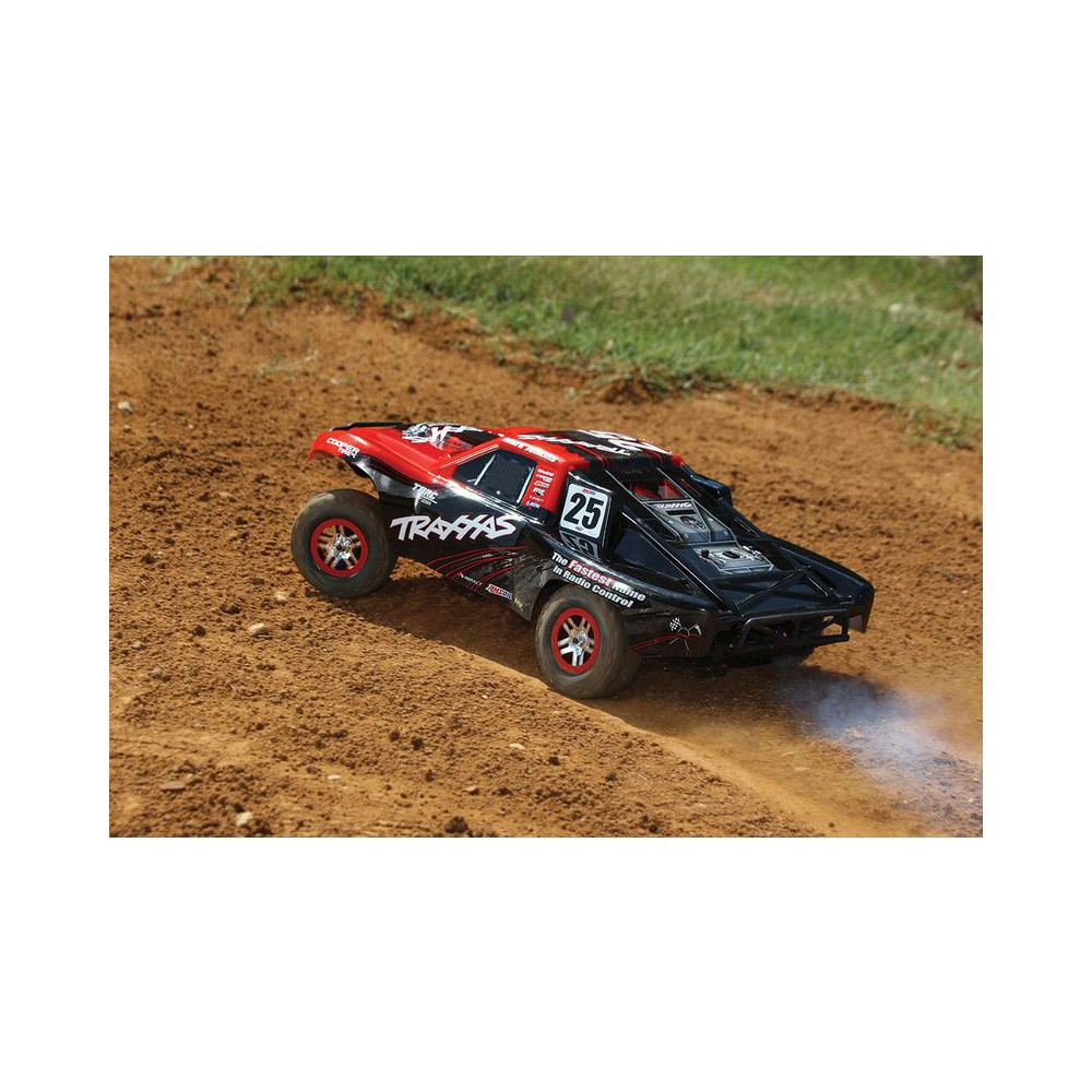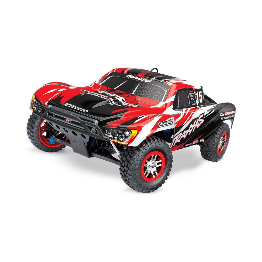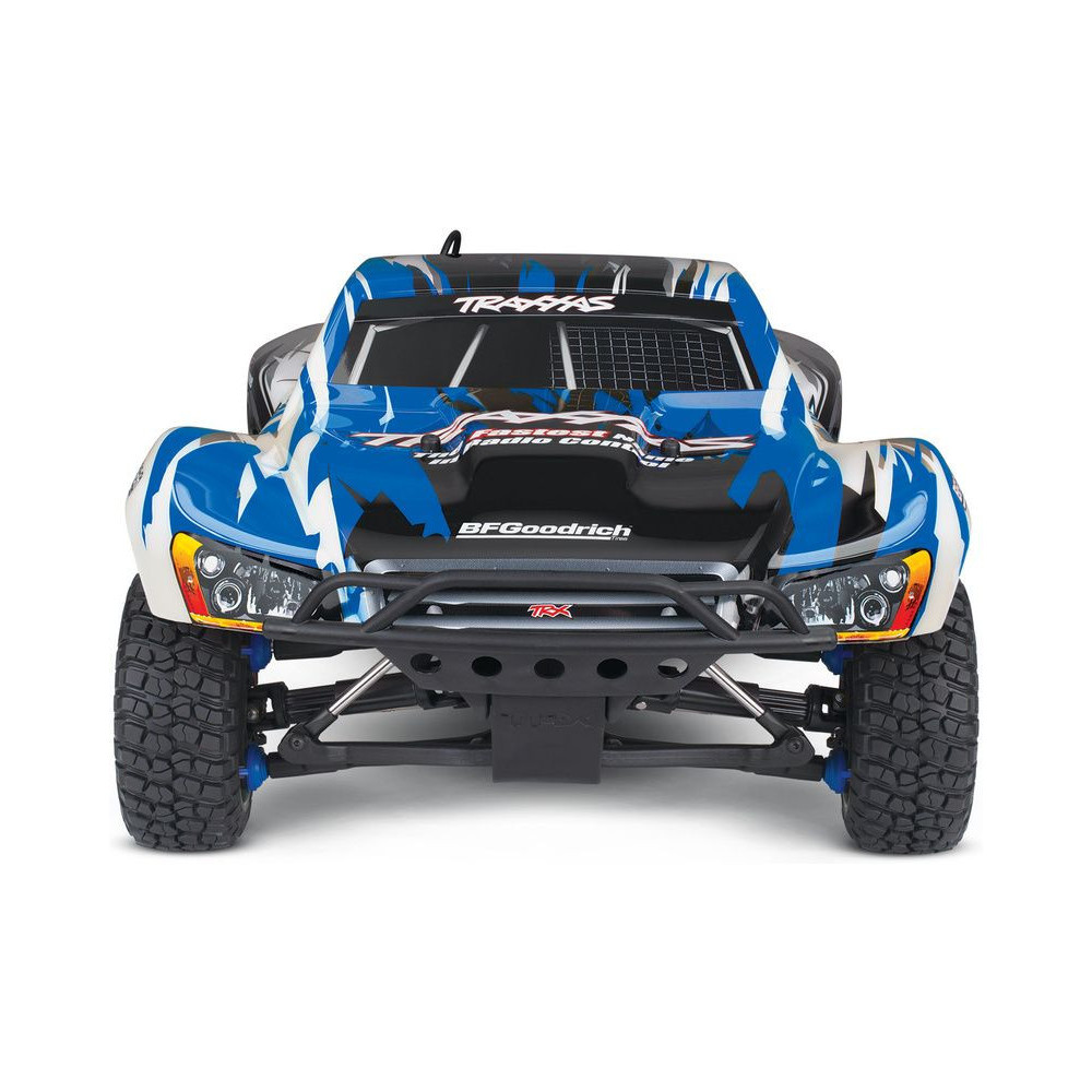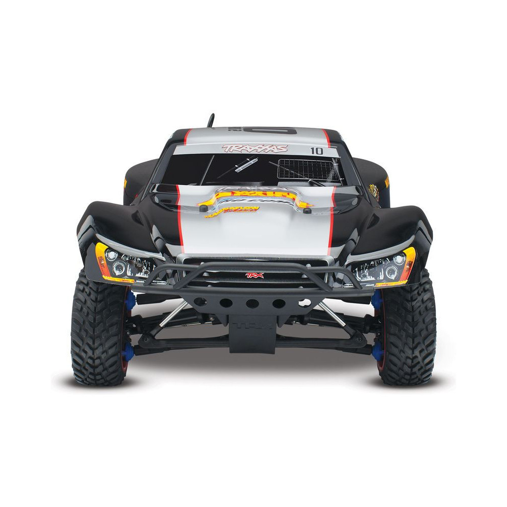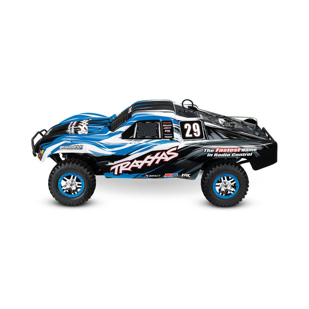 A Racing Short Course Truck Slayer Pro 4x4 RC autómodell a végső eszköz a győzelemhez. Erőteljes TRX 3.3 versenymotor hajtja, tuningolt kipufogóval, a merev alváz pedig 3mm vastag 6061-T6 kék eloxált alumíniumból készült. A terepjáró gumiabroncsok maximális tapadást biztosítanak a terepen. A Traxxas Slayer RC autó nagy hasmagassággal rendelkezik, ami nem akadályozza meg abban, hogy a legnagyobb bukkanókon is áthaladjon. A Slayer Pro hihetetlen gyorsulással és nagyszerű kezelhetőséggel rendelkezik a pályán az összkerékhajtásnak és a nagy tengelytávnak köszönhetően. Akár 80 km/h sebességet is elérhet!