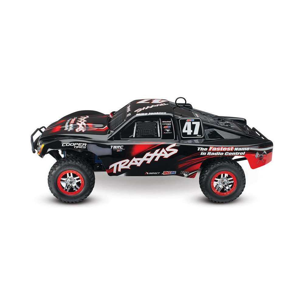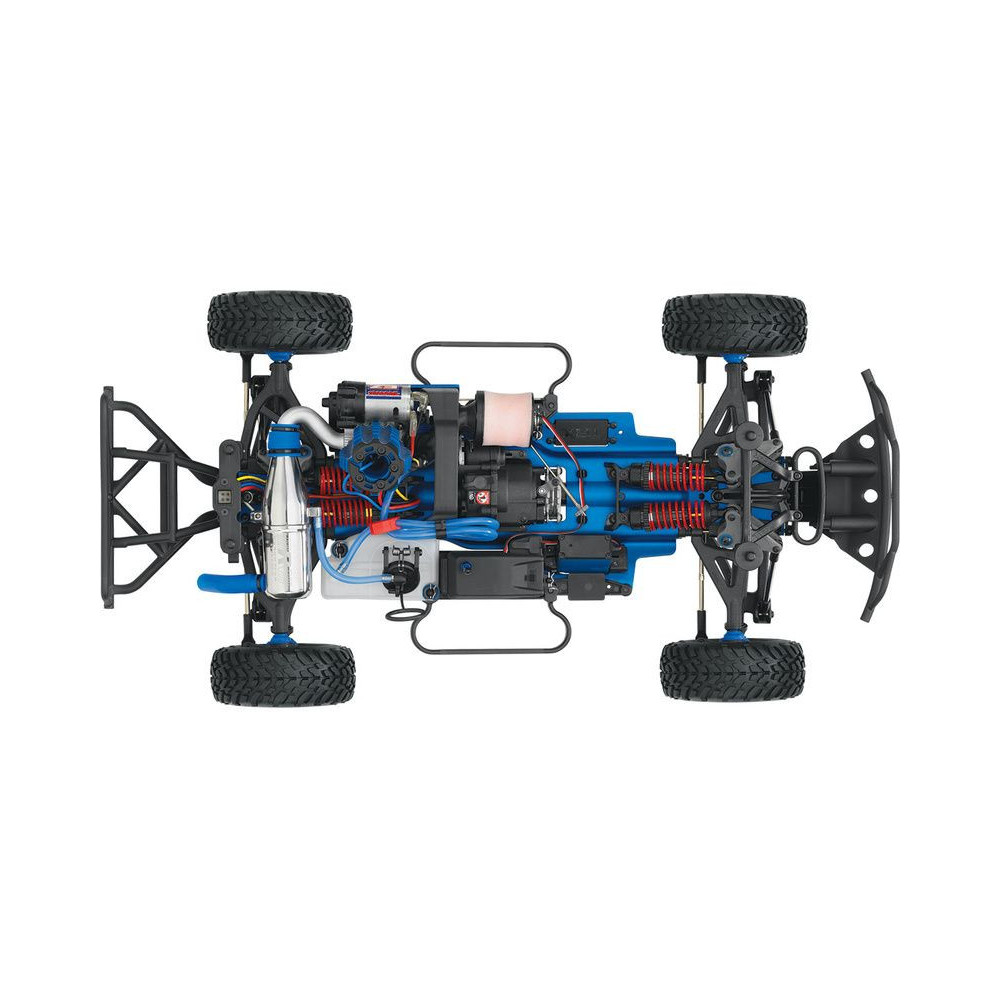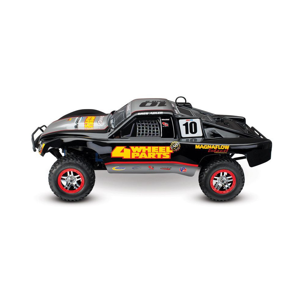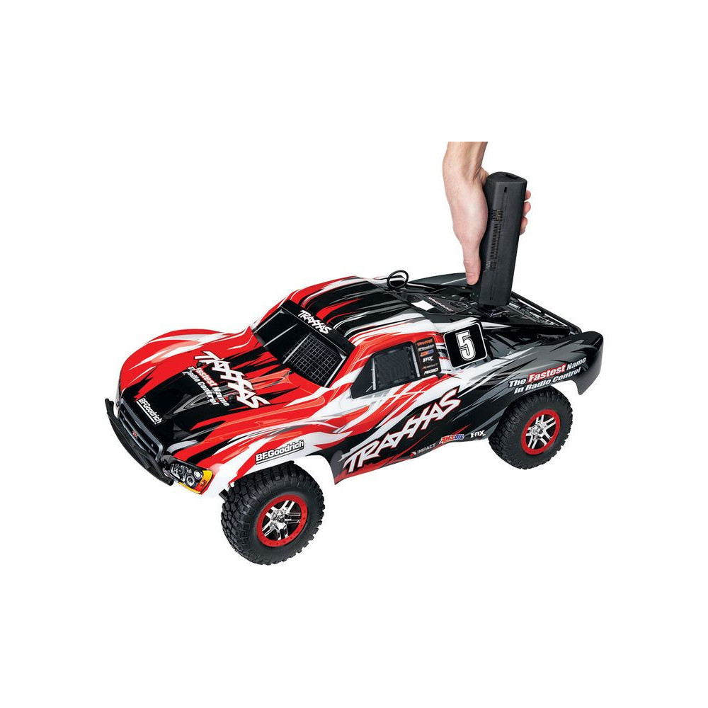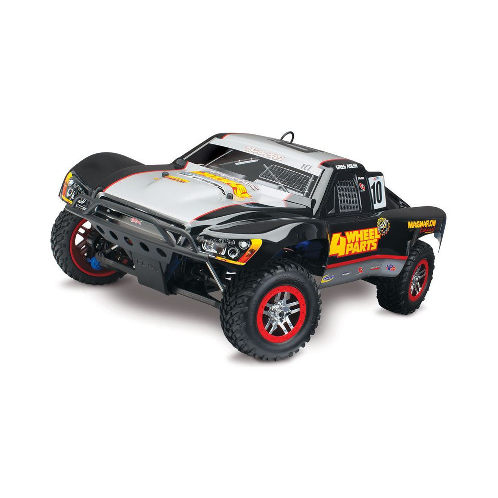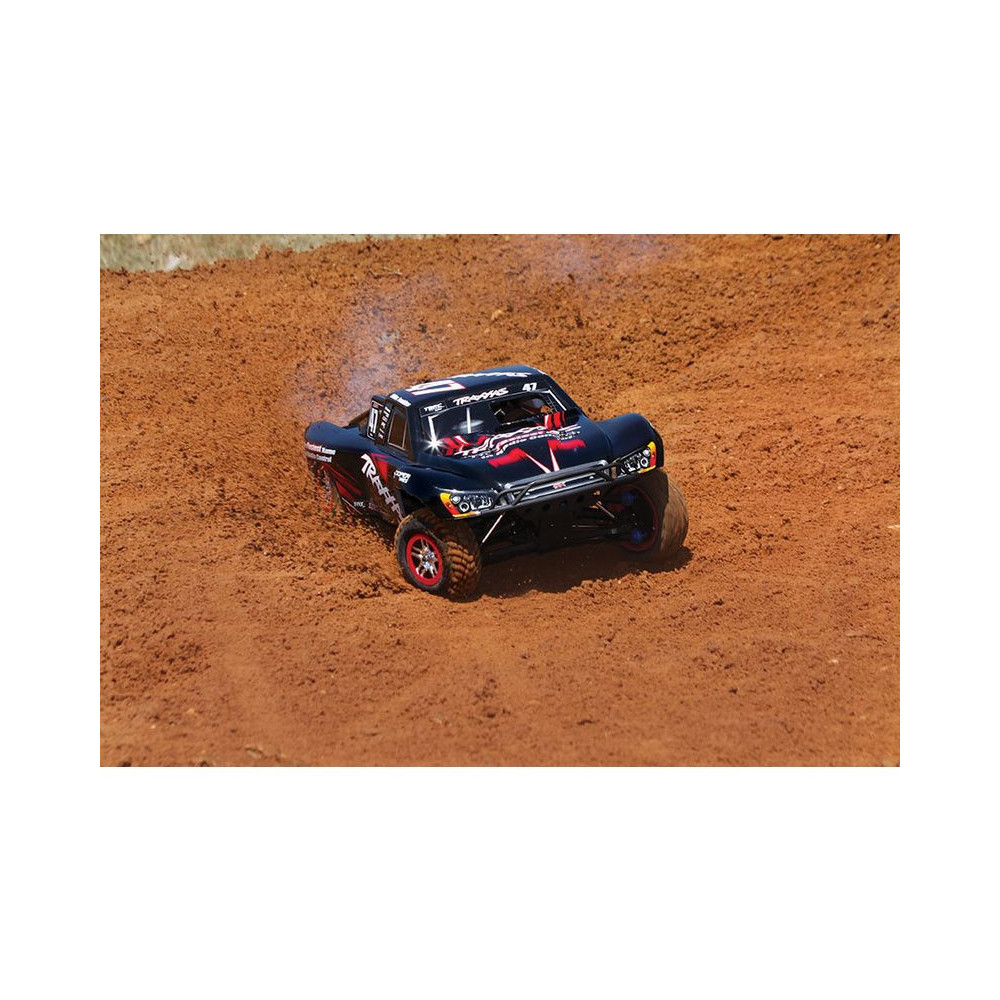 A Racing Short Course Truck Slayer Pro 4x4 RC autómodell a végső eszköz a győzelemhez. Erőteljes TRX 3.3 versenymotor hajtja, tuningolt kipufogóval, a merev alváz pedig 3mm vastag 6061-T6 kék eloxált alumíniumból készült. A terepjáró gumiabroncsok maximális tapadást biztosítanak a terepen. A Traxxas Slayer RC autó nagy hasmagassággal rendelkezik, ami nem akadályozza meg abban, hogy a legnagyobb bukkanókon is áthaladjon. A Slayer Pro hihetetlen gyorsulással és nagyszerű kezelhetőséggel rendelkezik a pályán az összkerékhajtásnak és a nagy tengelytávnak köszönhetően. Akár 80 km/h sebességet is elérhet!