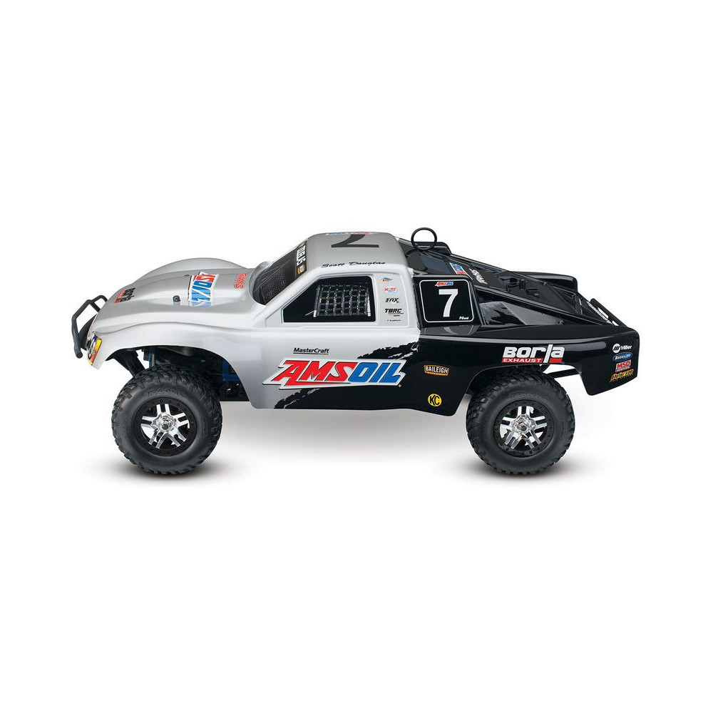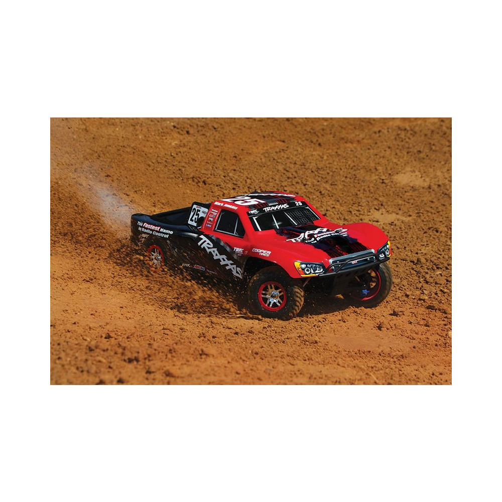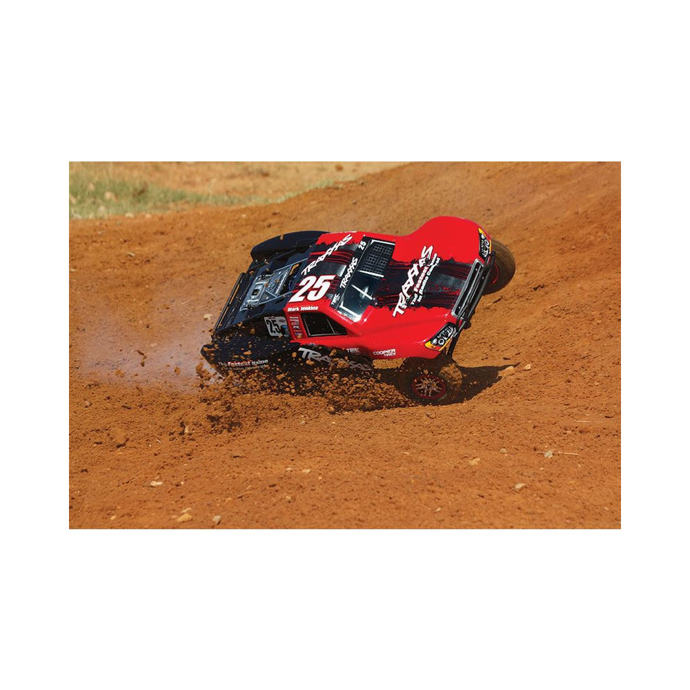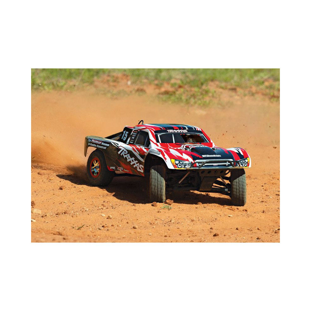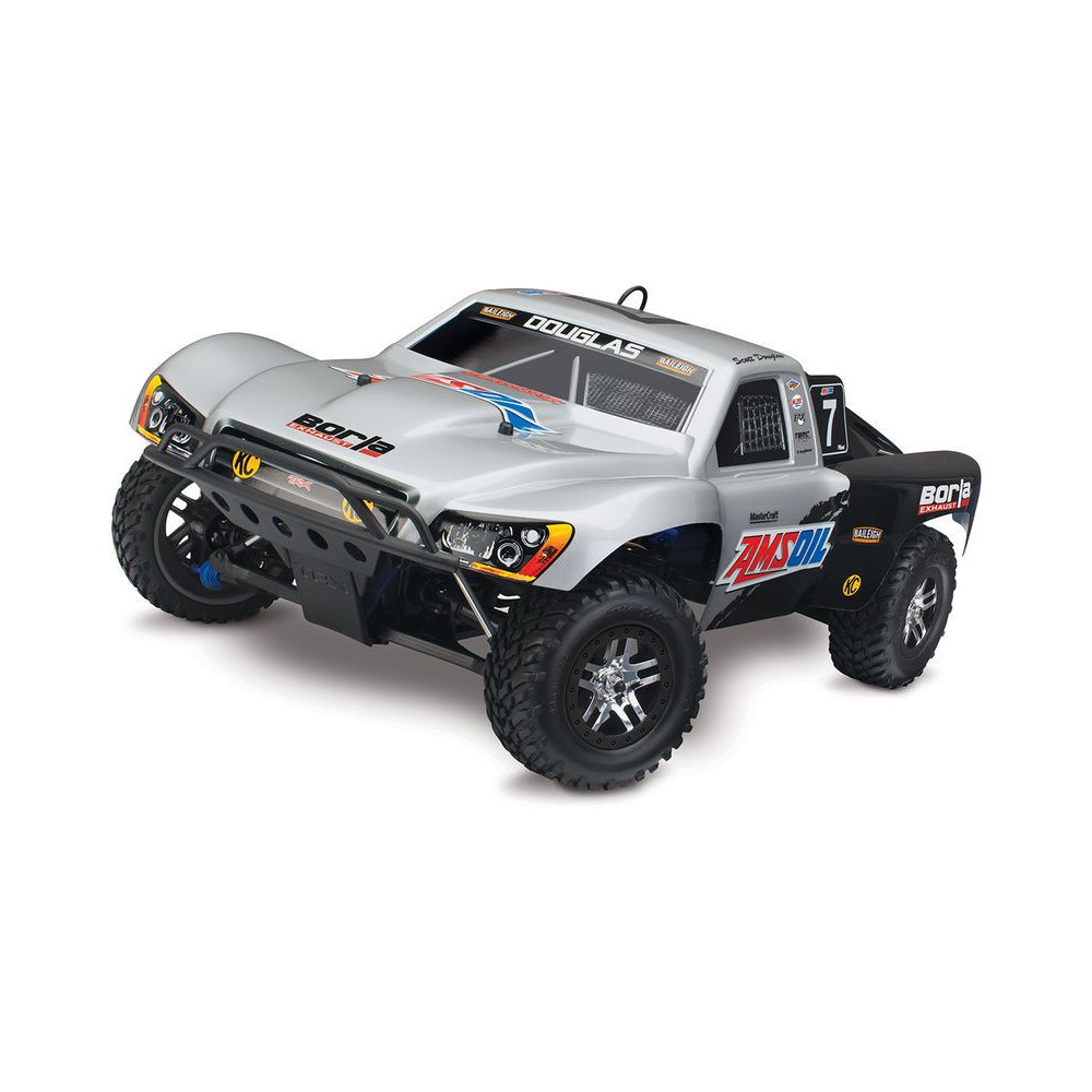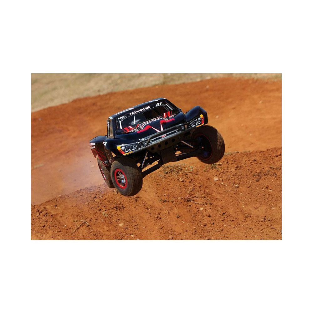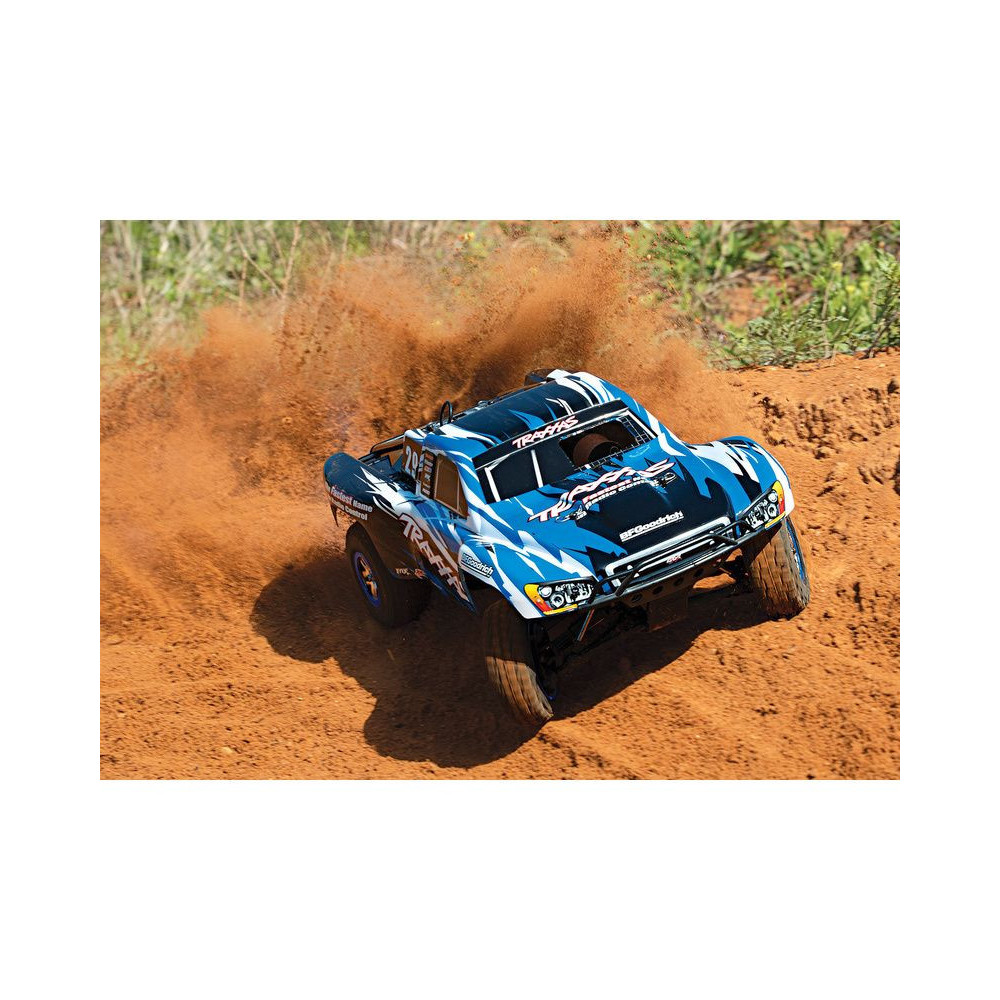A Racing Short Course Truck Slayer Pro 4x4 RC autómodell a végső eszköz a győzelemhez. Erőteljes TRX 3.3 versenymotor hajtja, tuningolt kipufogóval, a merev alváz pedig 3mm vastag 6061-T6 kék eloxált alumíniumból készült. A terepjáró gumiabroncsok maximális tapadást biztosítanak a terepen. A Traxxas Slayer RC autó nagy hasmagassággal rendelkezik, ami nem akadályozza meg abban, hogy a legnagyobb bukkanókon is áthaladjon. A Slayer Pro hihetetlen gyorsulással és nagyszerű kezelhetőséggel rendelkezik a pályán az összkerékhajtásnak és a nagy tengelytávnak köszönhetően. Akár 80 km/h sebességet is elérhet!