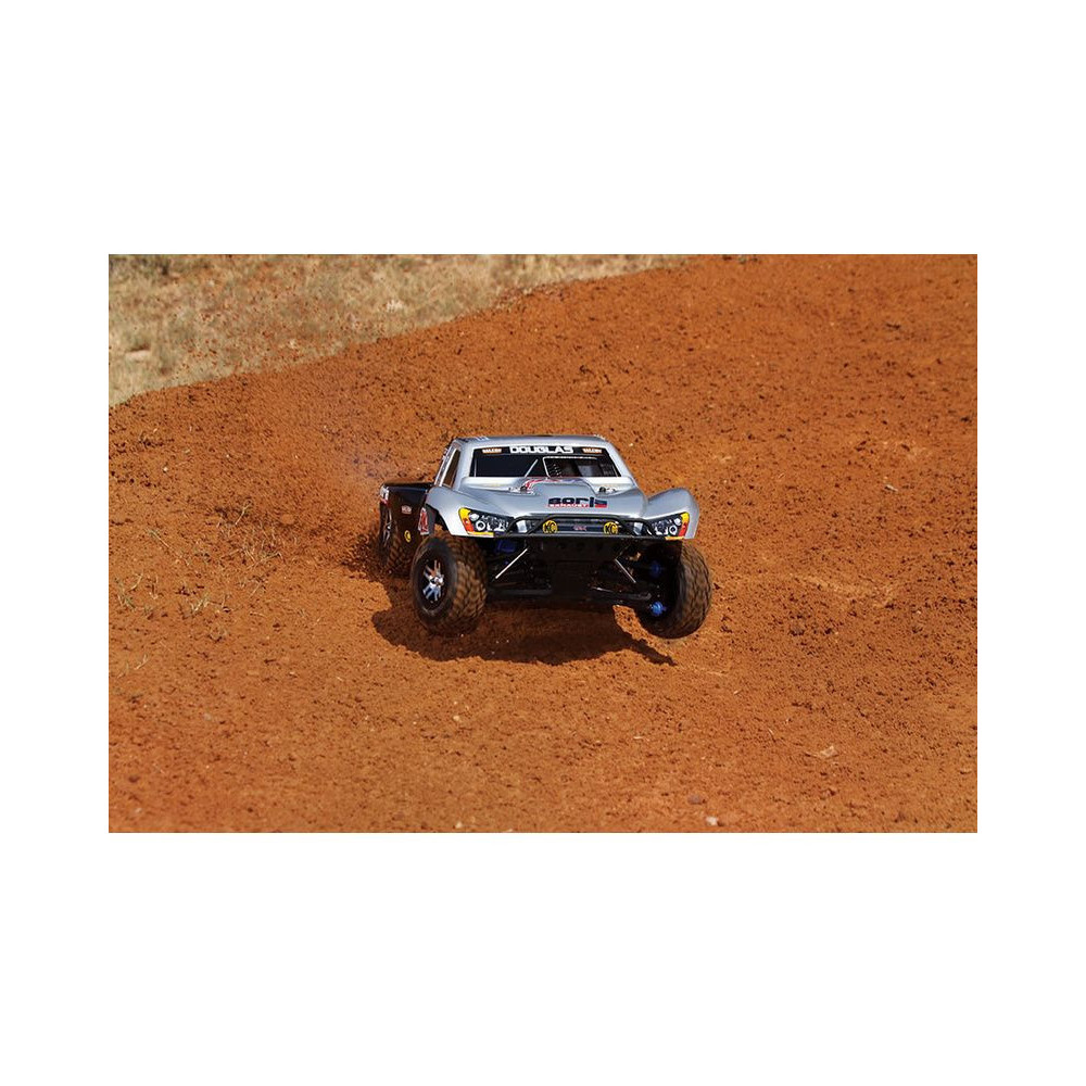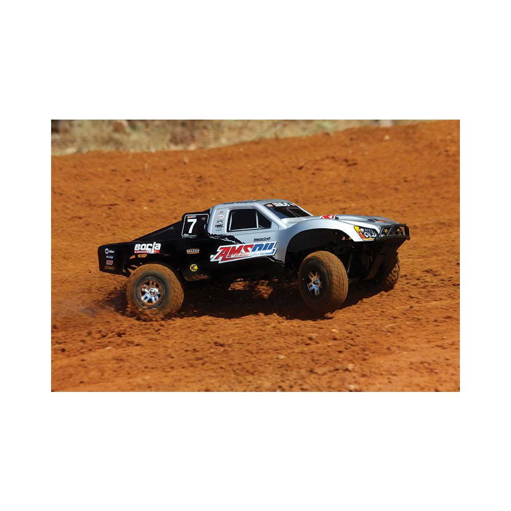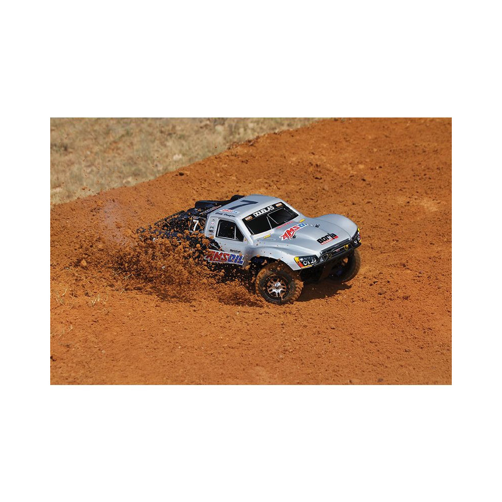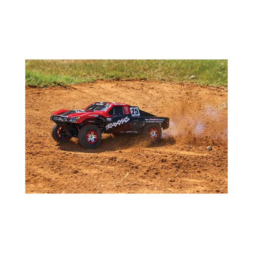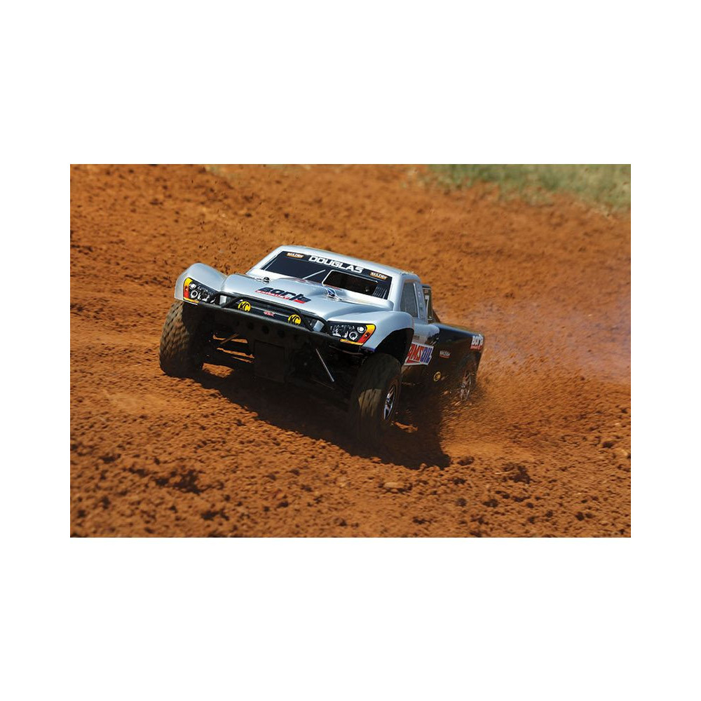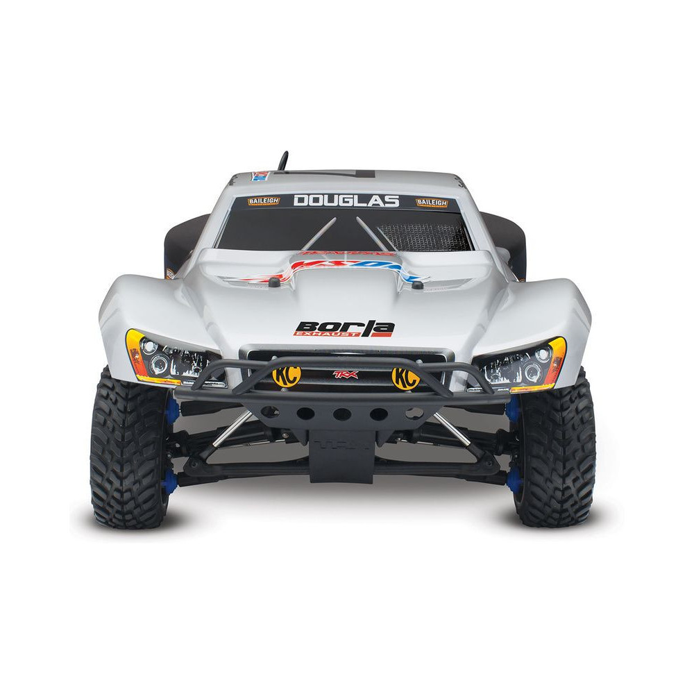 A Racing Short Course Truck Slayer Pro 4x4 RC autómodell a végső eszköz a győzelemhez. Erőteljes TRX 3.3 versenymotor hajtja, tuningolt kipufogóval, a merev alváz pedig 3mm vastag 6061-T6 kék eloxált alumíniumból készült. A terepjáró gumiabroncsok maximális tapadást biztosítanak a terepen. A Traxxas Slayer RC autó nagy hasmagassággal rendelkezik, ami nem akadályozza meg abban, hogy a legnagyobb bukkanókon is áthaladjon. A Slayer Pro hihetetlen gyorsulással és nagyszerű kezelhetőséggel rendelkezik a pályán az összkerékhajtásnak és a nagy tengelytávnak köszönhetően. Akár 80 km/h sebességet is elérhet!