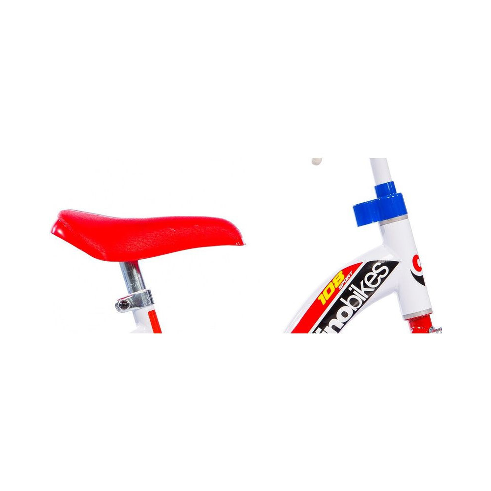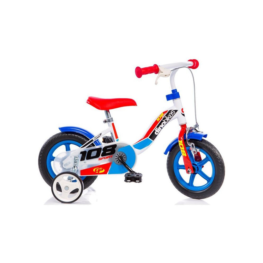 Dino Bikes 108FLB gyerekkerékpár a legkisebbeknek, akik szeretnének megtanulni kerékpározni. A felni teljes gumiabroncsokkal, felfújás nélkül, a kerékpár első féknyerges fékkel, állandó váltóval és segédkerékkel van felszerelve.