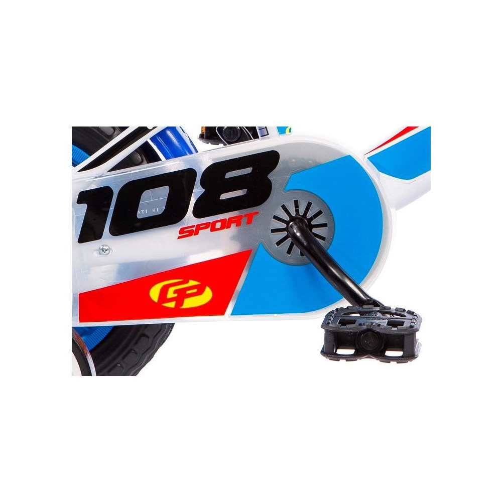 Dino Bikes 108FLB gyerekkerékpár a legkisebbeknek, akik szeretnének megtanulni kerékpározni. A teljes felnivel, nem felfújható gumikkal ellátott kerékpár első féknyerges fékkel, fix áttétellel és segédkerékkel van felszerelve.