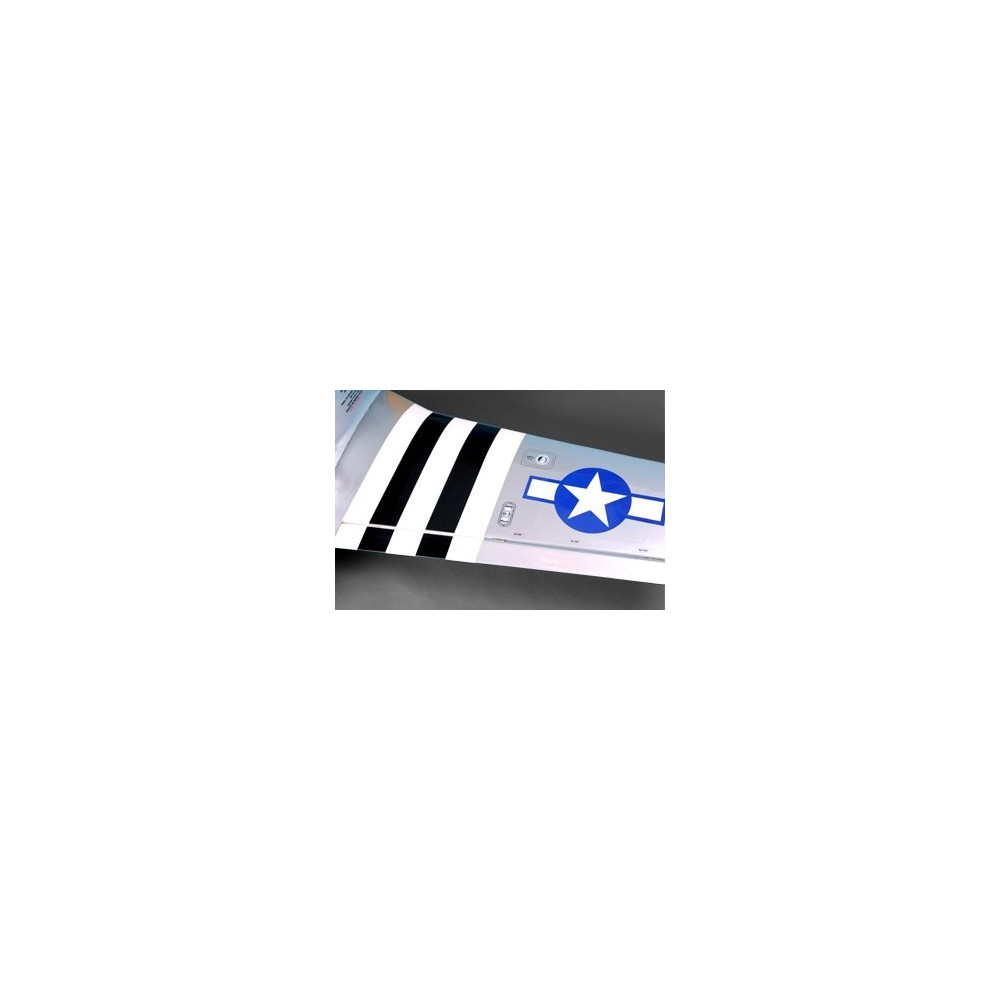 A legendás amerikai vadászgép félmodellje 6,5-8 cm3-es kétütemű vagy 8-10 cm3-es négyütemű motorokhoz. A modell hajóteste klasszikus, teljes egészében balsafából készült, laminált motorburkolattal. A félszimmetrikus profilú, kétrészes szárny szintén klasszikus konstrukció torziós dobozzal; poliamid csavarokkal van rögzítve a hajótesthez. A szárnyakat két független szervomotor vezérli. A farokfelületek klasszikus teljes balsafa. A teljes modellt Oracover vasalható fóliával vonták be, amely ezüstszürke "alumínium" és olíva színű, invazív csíkokkal kombinált színkombinációt tartalmaz. A modell behúzható mechanikus alvázzal van felszerelve.