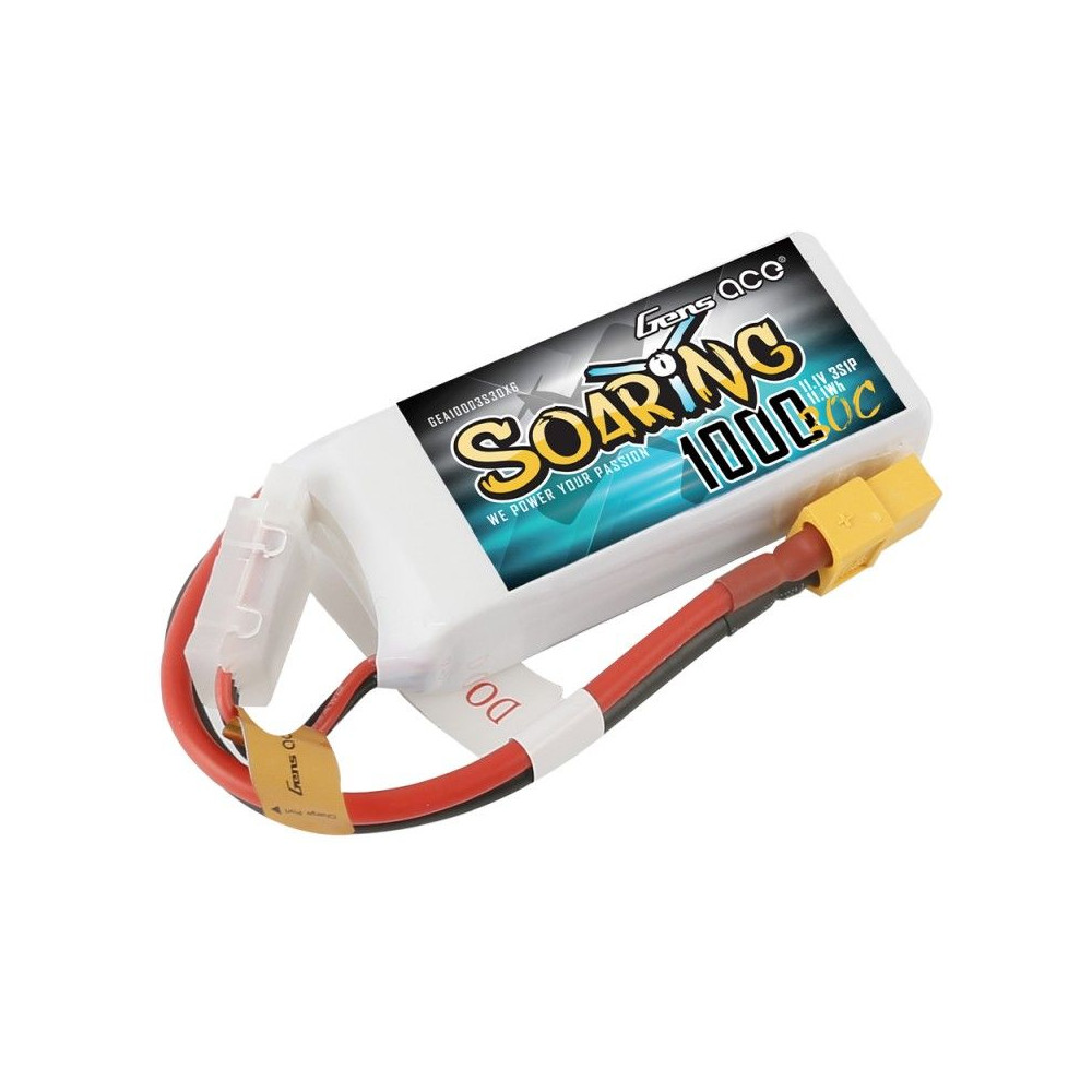 Gens ace Soaring 1000mAh 11.1V 30C 3S1P Lipo Battery Pack je ideálny pre malé lietadlá v triede 800mm a kombinuje našu kvalitu výroby s odolnosťou, výkonom a nízkou hmotnosťou, ktoré vyrábame v našej továrni každý deň.