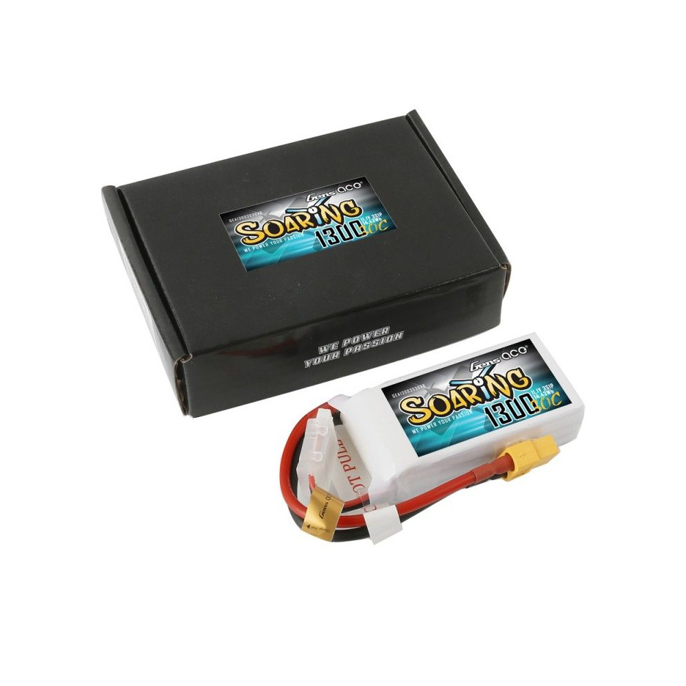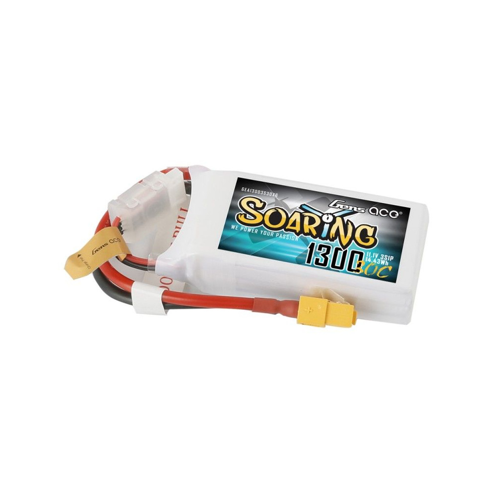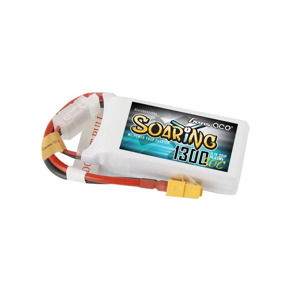 Gens ace Soaring 1300mAh 11.1V 30C 3S1P Lipo Battery Pack with XT60 Plug