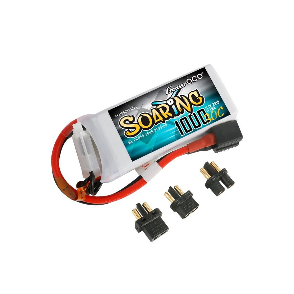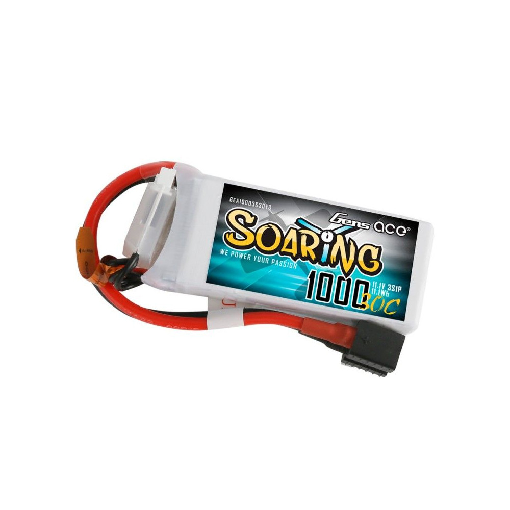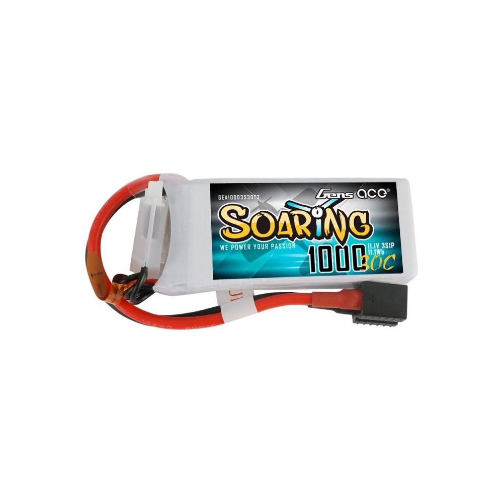Gens ace Soaring 1000mAh 11.1V 30C 3S1P Lipo Battery Pack with EC3/XT60/T-plug