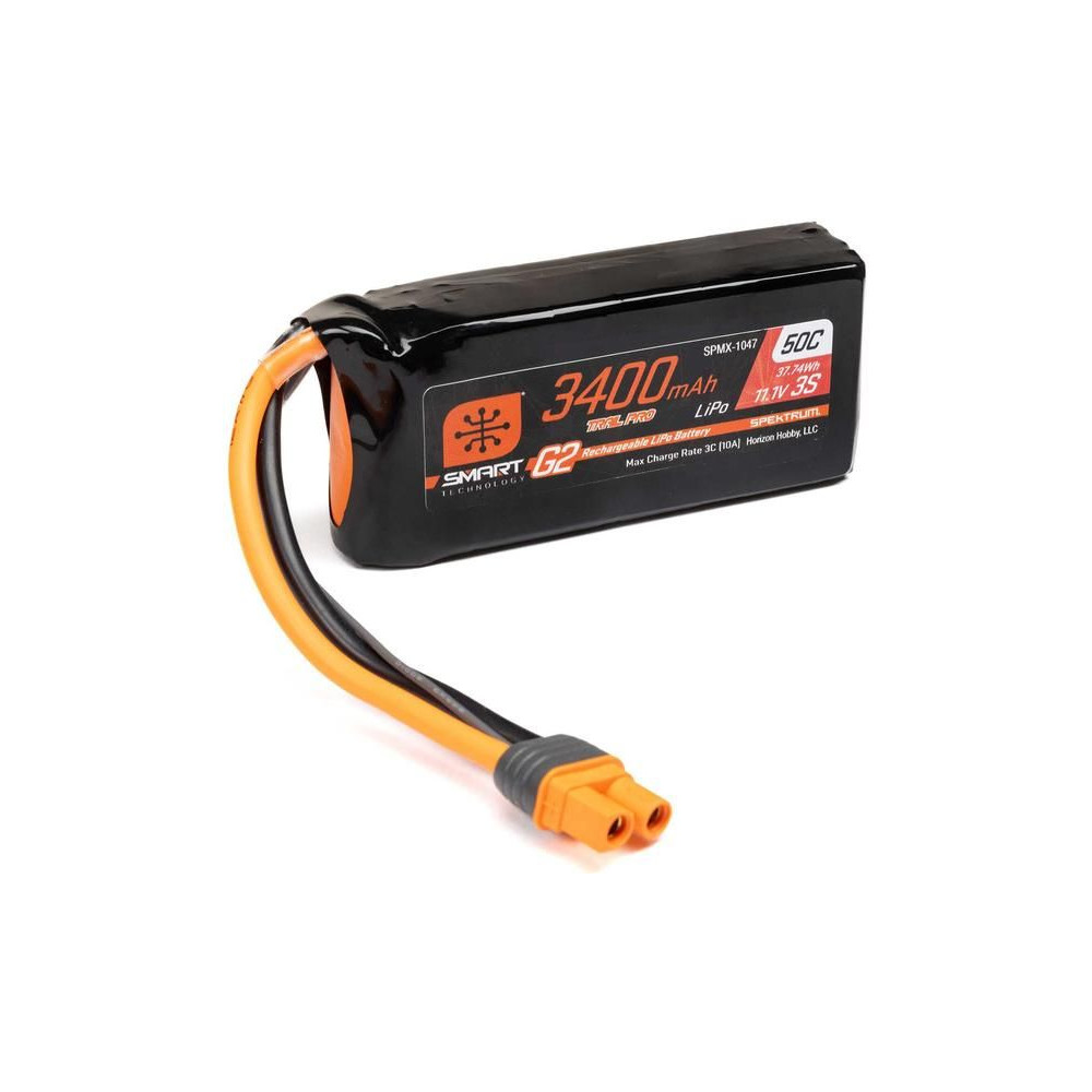 LiPo akkumulátor Spektrum Smart G2 Trail Pro LiPo 11.1V 3400mAh 50C IC3 egy új generációs akkumulátor, balancer csatlakozó nélkül, IC3 adatkábellel. Spektrum™ Smart töltő szükséges hozzá. Az integrált mikrochip tárolja az egyes akkumulátorok egyedi paramétereit, Smart technológia az egyszerű töltésért.