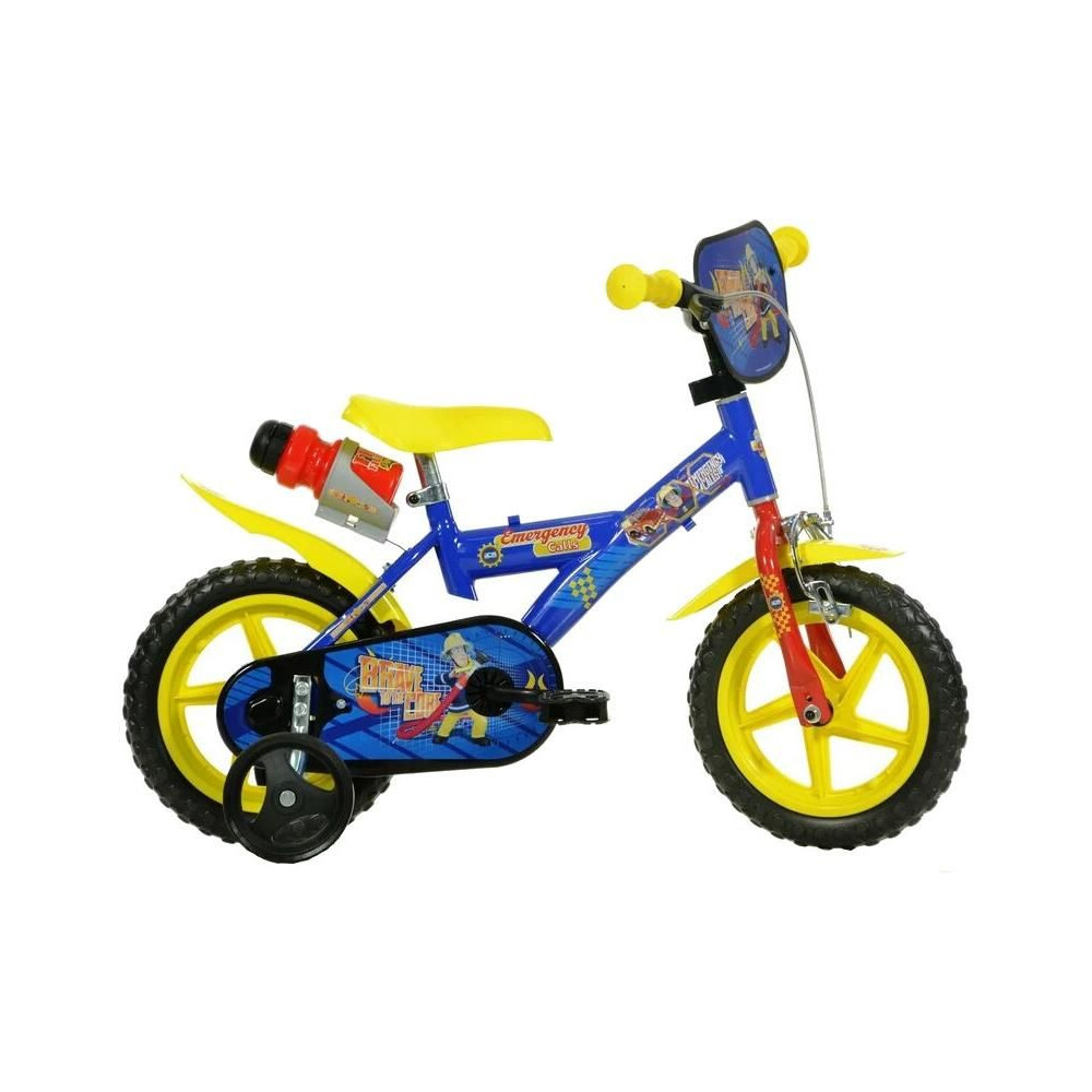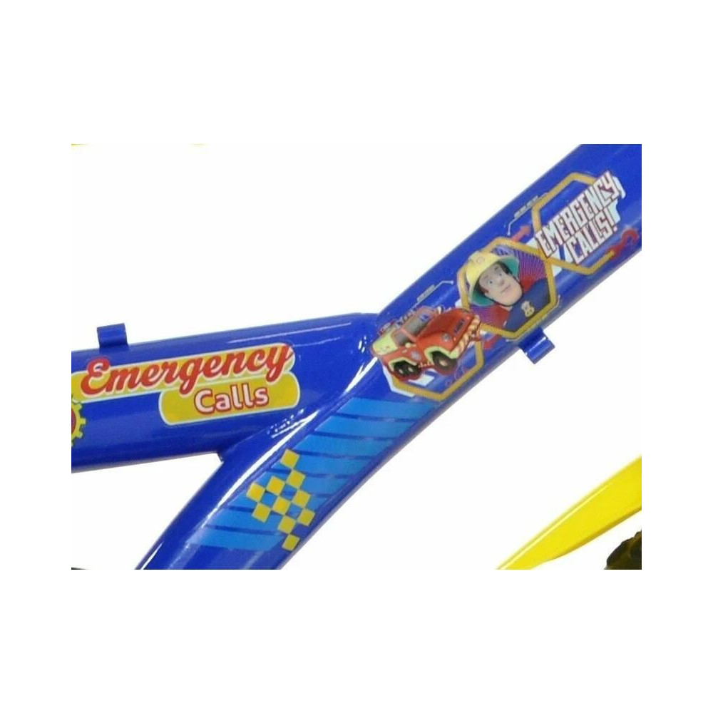 DINO Bikes - 12"-os gyerekbicikli tűzoltó Sam motívummal, a kis versenyzőknek. Műanyag felni teljes gumival (nem kell felfújni), első dobfékkel, fix váltóval, palacktartóval és láncvédővel. Ajánlott életkor és testmagasság: 2-4 éves korig, 87-120 cm.