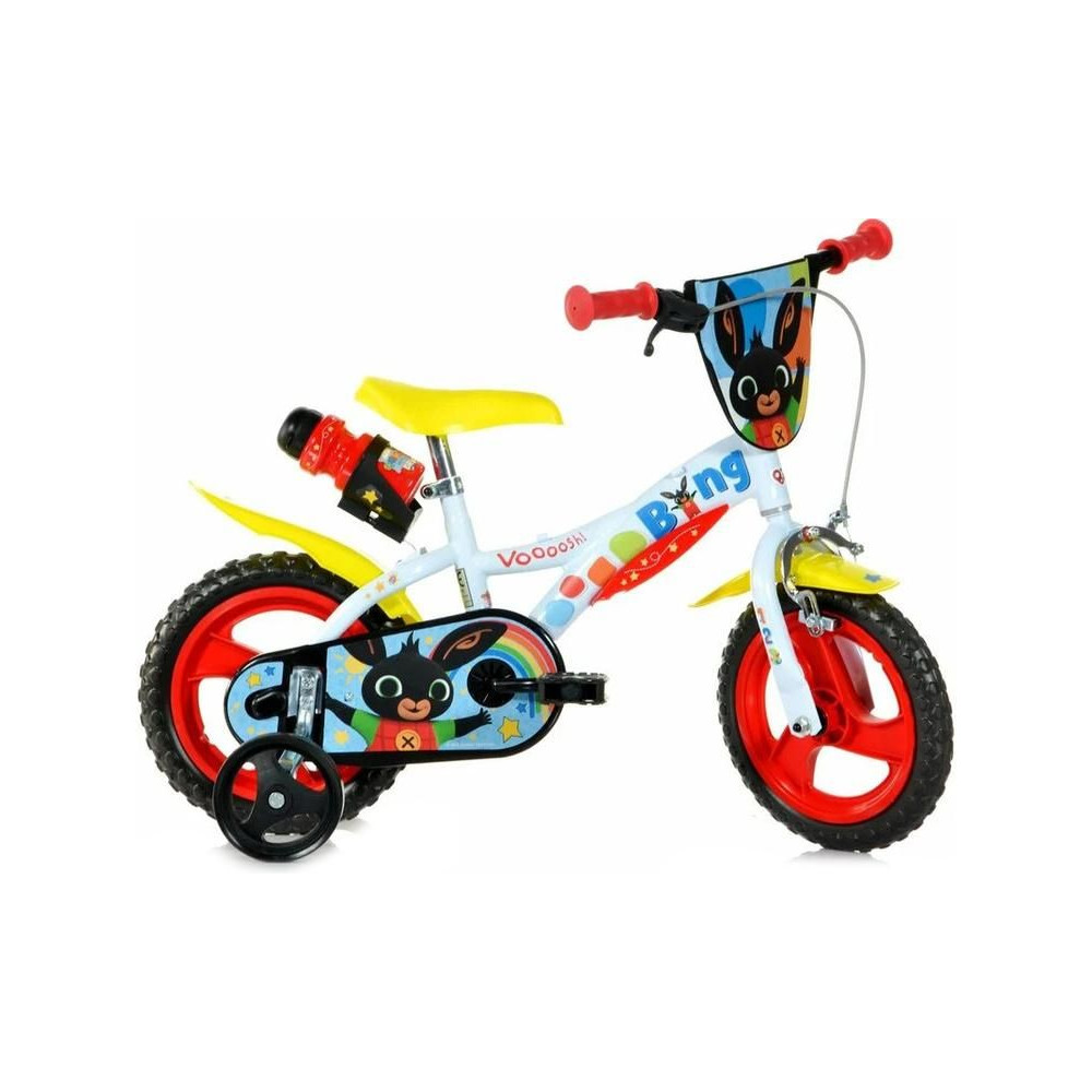 DINO Bikes - 12" Bing, a kerékpár a kis versenyzőknek és a Bing mese rajongóinak. Műanyag felni teljes gumival (nem kell felfújni), első féknyerges fékkel, fix váltóval, palacktartóval és láncvédővel. Ajánlott életkor és gyermekmagasság: 2-4 éves korig, 87-120 cm.