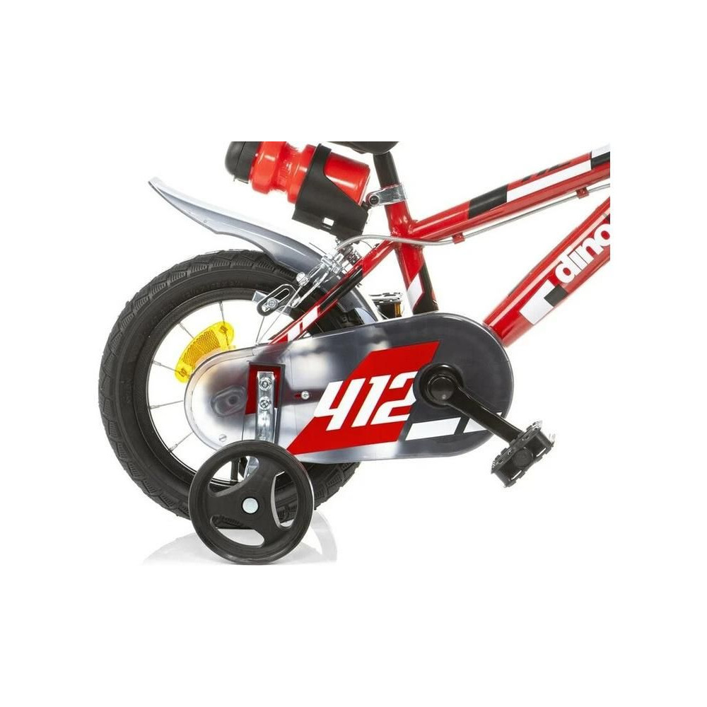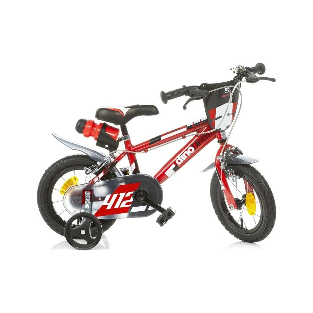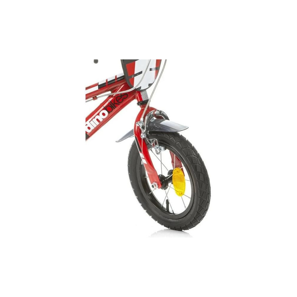 DINO Bikes - 12" piros. Levegővel töltött gumiabroncsok drótkötésű felnivel, szabadonfutó áttétel, mindkét keréken féknyerges fék, palacktartó, csengő. Ajánlott életkor és gyermekmagasság: 2-4 év, 87-120 cm.