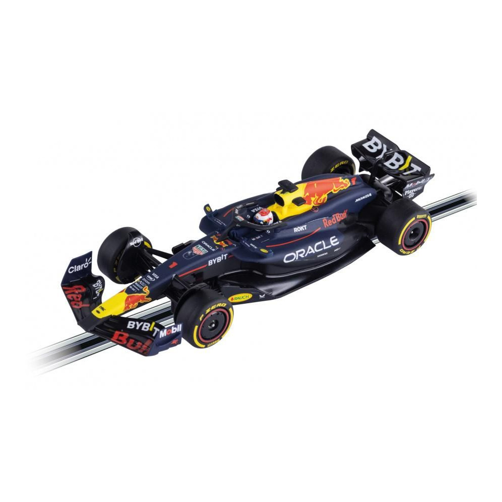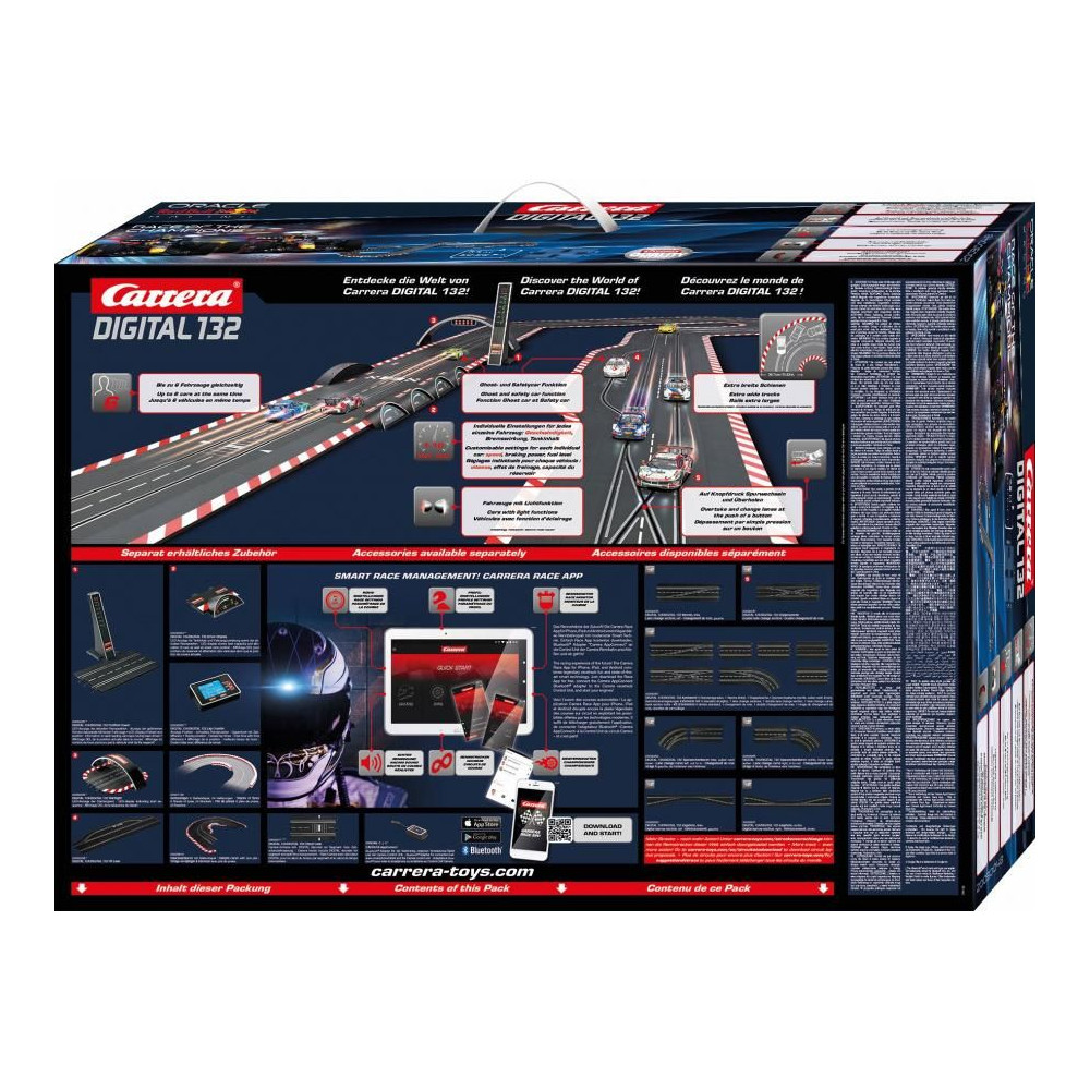 A 7,3 méter hosszú Carrera Digital 132 versenypálya F1 Red Bull autókkal tartalmaz egyeneseket, kanyarokat, vezeték nélküli vezérlőket, hidat, balról jobbra előzési lehetőséget, teljesítmény-szabályozót és egyéb alkatrészeket.