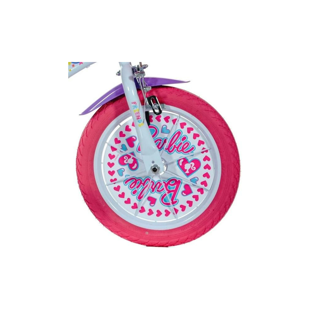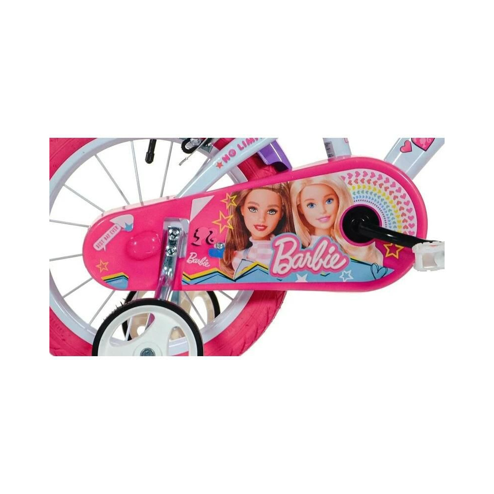 A DINO Bikes - 14"-os gyerekkerékpár csodálatos Barbie baba motívummal, babaüléssel és kosárral a tökéletes kerékpár a kis kerékpárosok számára. Levegővel töltött gumiabroncsok fém felnivel, extra kerekek, szabadonfutó áttétel, mindkét keréken féknyerges fék. A gyermek ajánlott életkora és magassága: 3-5 év, 95-127 cm.