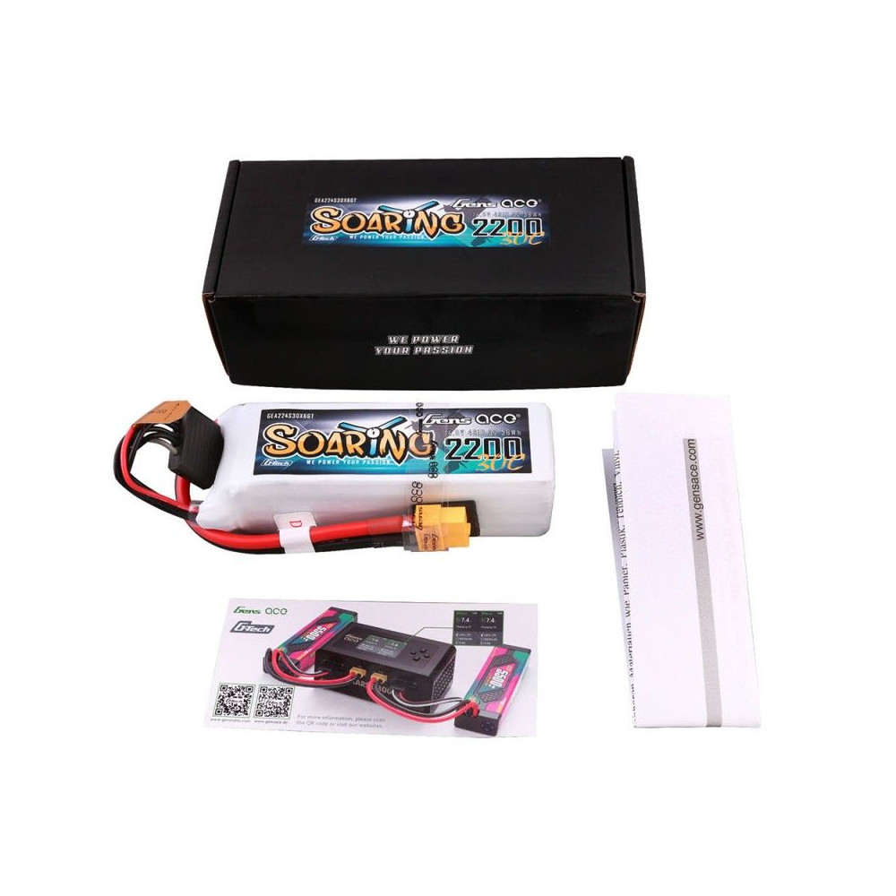 Gens ace G-Tech Soaring 2200mAh 14,8V 30C 4S1P Lipo Battery Pack s konektorom XT60 vám poskytuje vysoko kvalitné a spoľahlivé napájanie pre vaše rádiom riadené lietadlá. Využíva stabilnú technológiu automatického stohovania, ktorá umožňuje dosiahnuť kapacitu jedného článku 1300mAh. Celkovo je to skvelá voľba pre vaše rádiom riadené hobby.