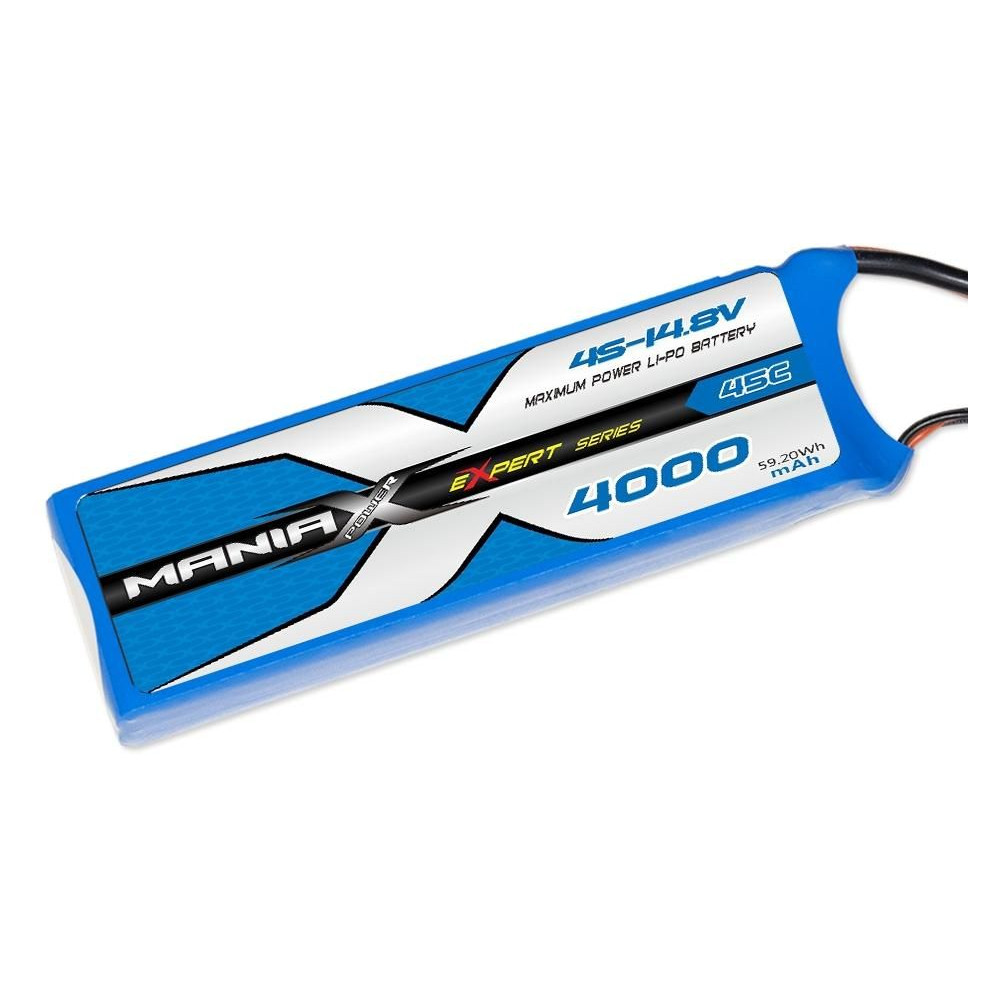 Az eXpert 45/90C sorozatú ManiaX akkumulátorok standard kisütési árama 45C, csúcsárama akár 90C is lehet (MAX3001 esetén 50/100C), és gyorstöltési lehetőséggel (1-3C) rendelkeznek. Ezeket a modelleket igényesebb alkalmazásokhoz tervezték klasszikus és 3D akrobatikai repülőgépmodellekhez, ventilátoros modellekhez és helikopterekhez klasszikus és 3D akrobatikai bemutatókhoz. A nagy áramterhelhetőség garantálja a motor teljesítményének maximális kihasználását, és erőteljes repülési stílust tesz lehetővé, miközben nagyon jó hosszú élettartamot biztosít.