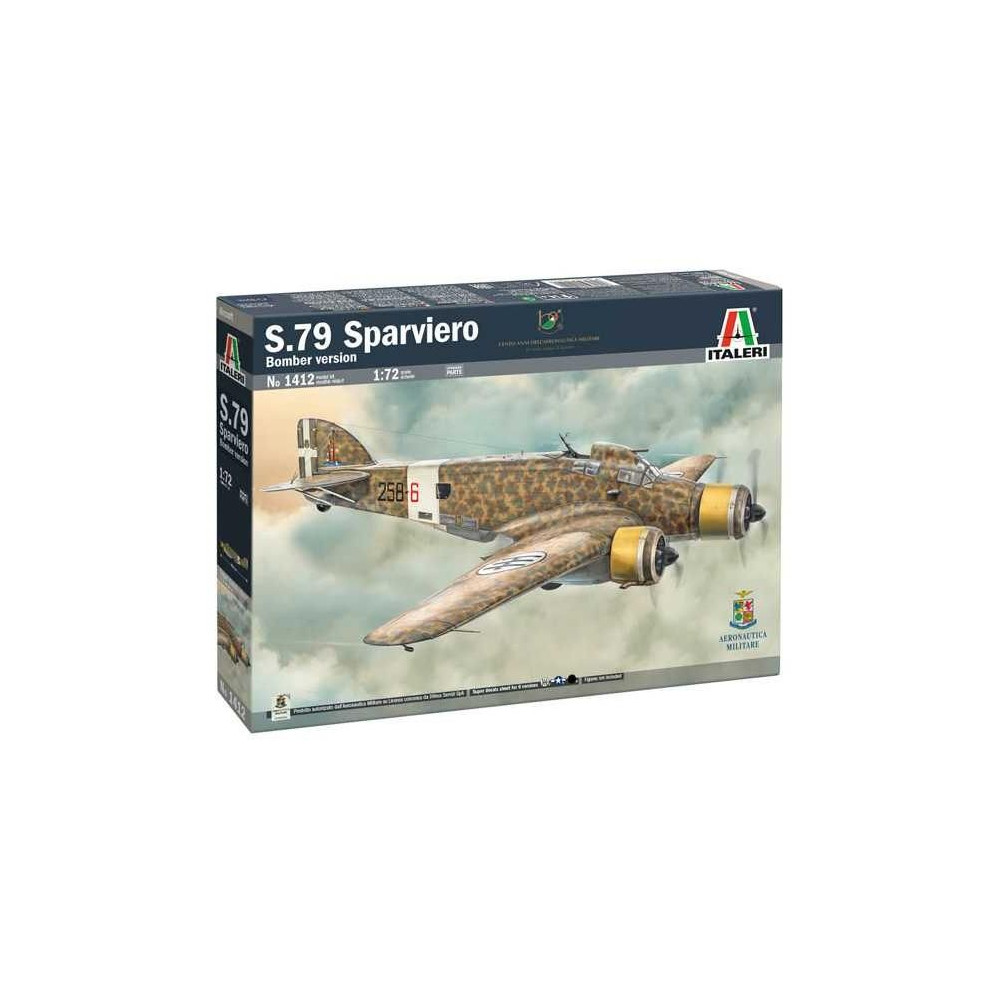 Az S.M.79 Sparviero-t az 1930-as években tervezte és gyártotta az olasz SIAI-Marchetti cég, eredetileg polgári repülőgépként, amely ebben az időszakban jelentős sebességi világrekordokat ért el. Tipikusan alacsonyan repülő konstrukció volt, három motorral és fából, vászonból és fémből készült repülőgépvázzal. Később átalakították katonai változatokká, és az olasz Regia Aeronautica a második világháború alatt széles körben használta, különösen bombázóként a Földközi-tengeren, majd hatékony torpedóbombázóként. A gépet a pilótafülke mögötti "púpról" lehetett felismerni, és három 750 lóerős Alfa Romeo 126 RC34 csillagmotorjának köszönhetően 430 km/óra (430 mph) végsebességre volt képes. Alapvető bombázó szerepkörében sok más, korszerűbb repülőgép váltotta fel, de a háború során a "Sparviero" tapasztalt legénysége kezében fontos eredményeket ért el az ellenséges hajókat támadó torpedó haditengerészeti műveletekben. 100%-BAN ÚJ KÉSZLETKIALAKÍTÁS - ALKATRÉSZEK FÓLIÁZOTT FÉMBŐL - SZÍNES ÚTMUTATÓ - SZUPER DEKÁLOK 4 VÁLTOZATHOZ