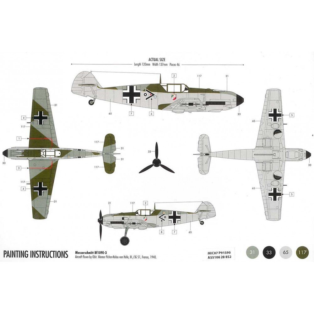 Starter Set repülőgép A55106 - Messerschmitt Bf109E3 (1:72)