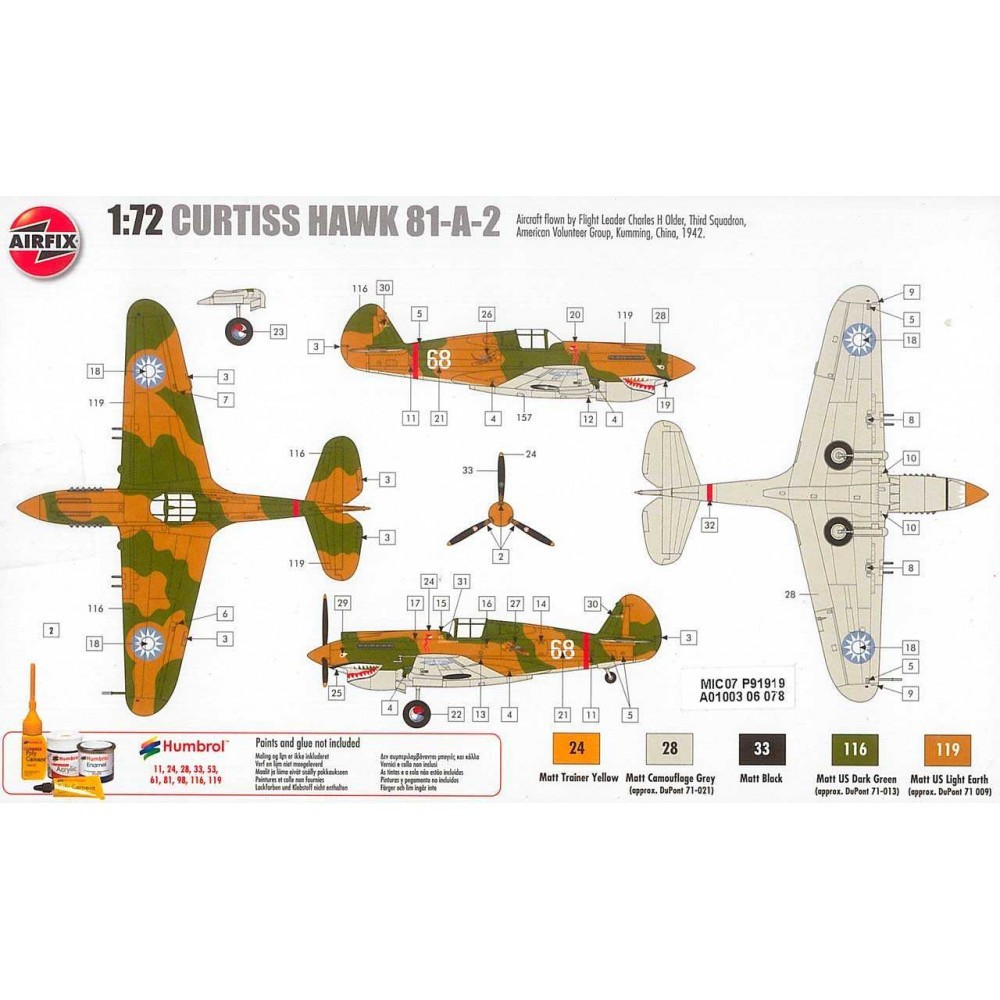 | Repülőgép modell ragasztani. Méret: 1:72; 13,5 cm. Acsomag tartalma: 47 darab összeragasztandó.Információk az eredetiről: A P40-es különböző változatokban szolgált az amerikai légierőnél a II. világháború alatt, amelynek során Európában, Ázsiában, valamint Észak-Afrika sivatagjaiban harcolt. Az első aktív szolgálatba állított modell a P40B nevet kapta, és hatékony és kitartó mélységi vadászgépnek bizonyult, amely képes volt ellenállni az erős ellenséges tűznek, és biztonságban hazajuttatni a pilótát. -Gyorsaság: 560 km/h -Fegyverzet: 4 x 7,62 mm-es Browning géppuska és 2 x 12,7 mm-es Browning géppuska -Repülés: 1170 kmSzínösszeállítás (szükséges színek): A- Curtis Hawk 81-A-2, Charles H Older repülőgép-vezető, Third Squadron, American Volunteer Group, Kumming, Kína, 1942 - 11, 24, 53, 61, 81, 98, 116, 119, 28Modell részletek:A - Curtis Hawk 81-A-2, Flight Leader Charles H Older, Third Squadron, American Volunteer Group, Kumming, Kína, 1942: Méretarány: 1:72 Alkatrészek száma: 47 Hosszúság: 134,5 mm Szárnyfesztávolság: 158 mm Nehézség: 1 Test Repülő órák száma: 1 Ajánlott 8 éves kortól. Figyelmeztetés. A termék apró alkatrészeket tartalmaz. 3 ÉV ALATTI GYERMEKEK SZÁMÁRA NEM ALKALMAS! |