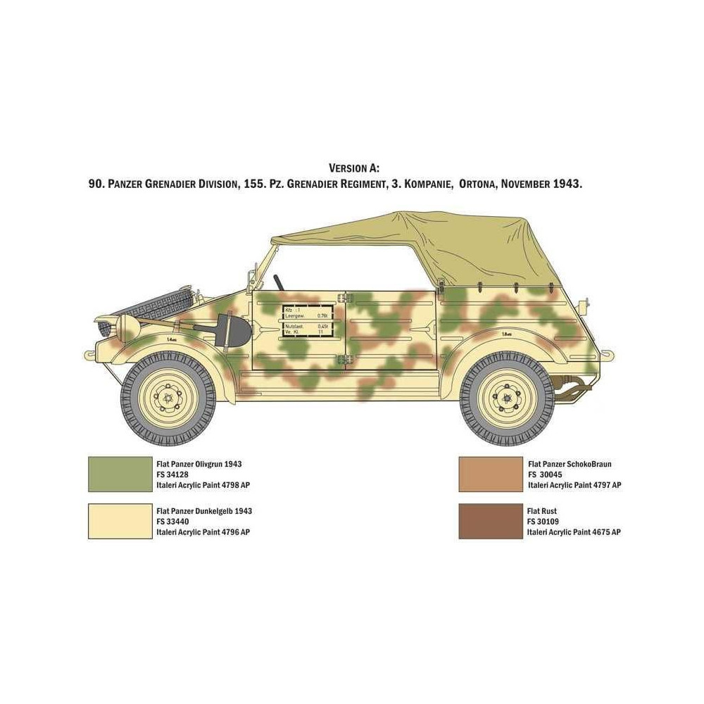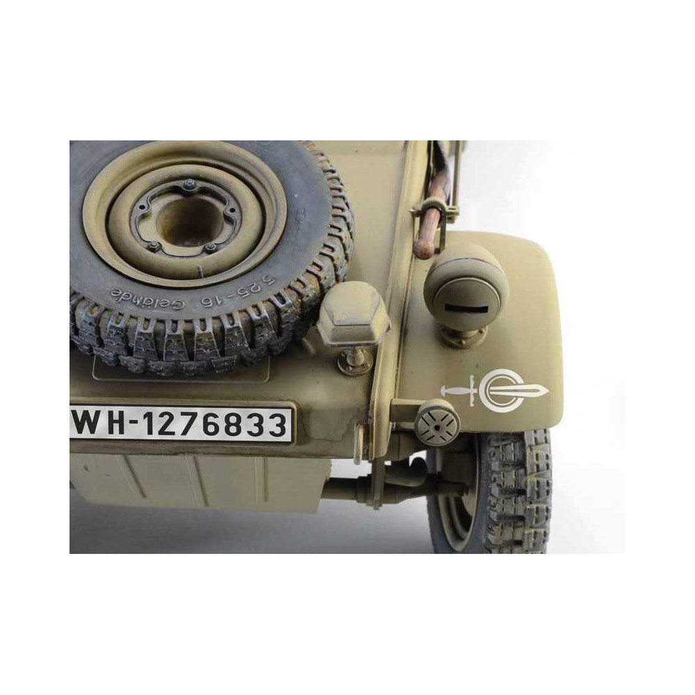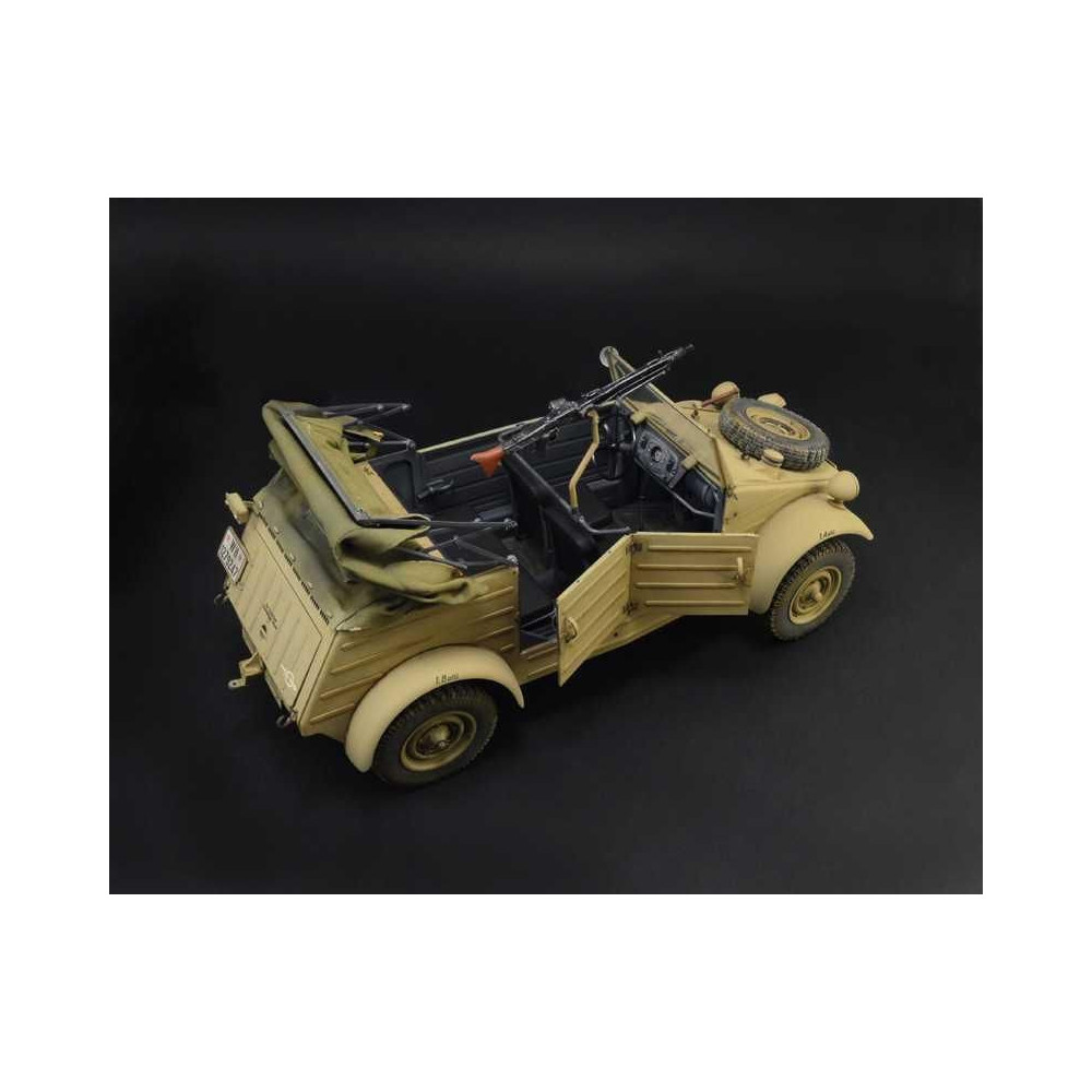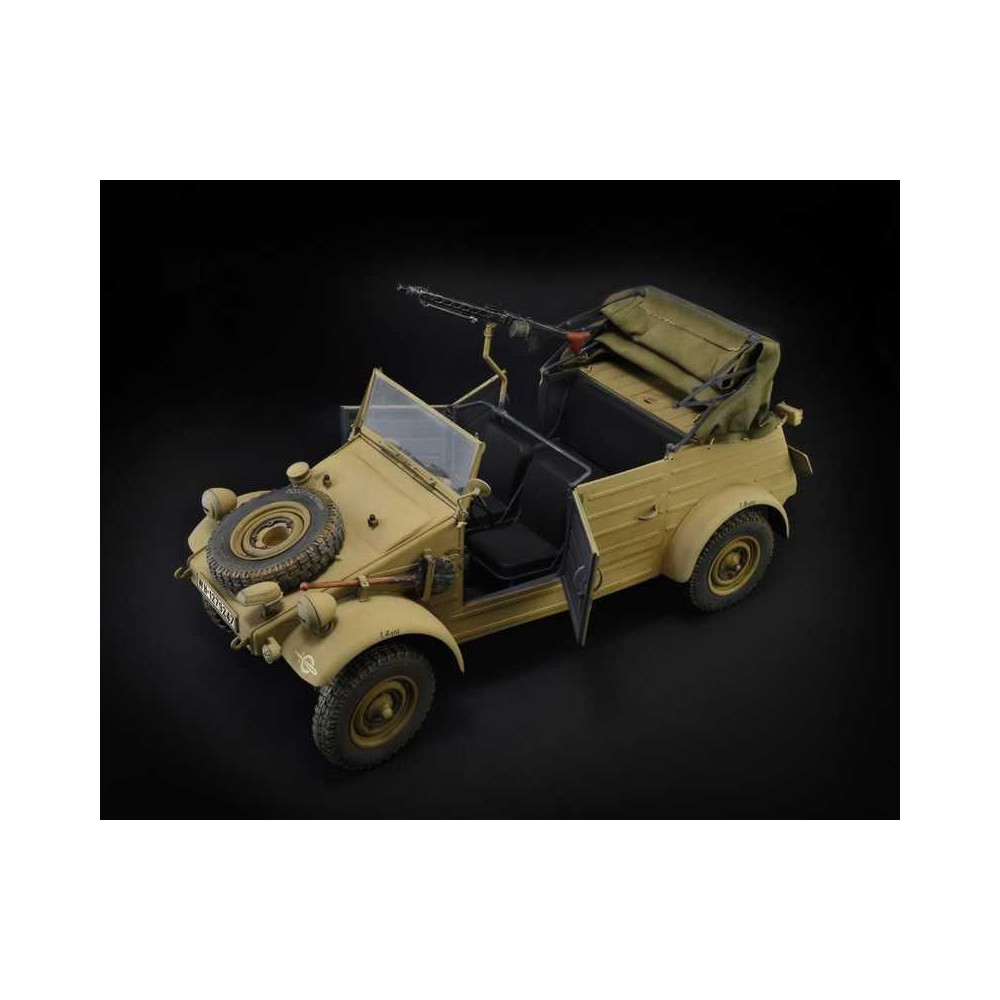 A 82-es típusú Kubelwagen a második világháború egyik leghíresebb katonai járműve. Maga Ferdinand Porsche tervezte, és a német Volkswagen autógyár gyártotta. A projekt néhány alapvető követelményből született: a cél egy egyszerű, könnyen gyártható, karbantartható és javítható autó létrehozása volt. Az új autó formatervét úgy alakították ki, hogy ne legyenek ráncok - a karosszériát alkotó lemezek tehát mind egyenesek és laposak. Még a vázszerkezetet is egyszerűnek tartották: csak egy középső csőből és egy hátsó gerendából áll a motor és a sebességváltó számára. A 998 köbcentis benzinmotornak köszönhetően a Kubelwagen 80 km/órás végsebességre volt képes. Bár nem volt összkerékhajtású, rendkívül megbízható volt mindenféle terepen, és nem hiányzott egyetlen háborús frontról sem, ahol a német hadsereg a második világháború alatt harcolt - gyakran a legnehezebb körülmények között. Ezenkívül a Kubelwagen felszerelhető volt MG34 vagy MG42 géppuskák számára kialakított állvánnyal.